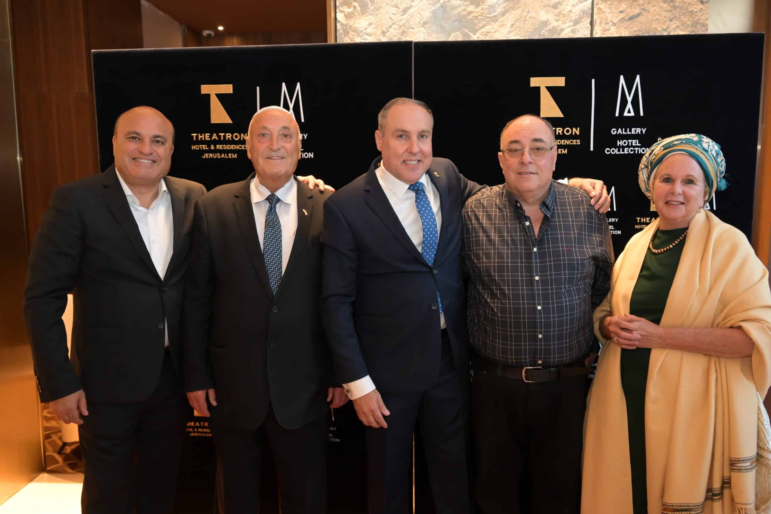 אבי בניהו, שלדון ריץ, ציון חסיד, שרון חסיד בפתיחת מלון התיאטרון צילום שלומי אמסלם