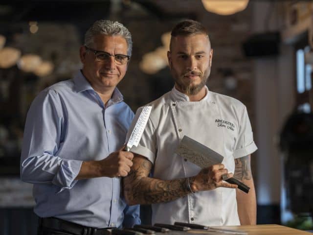 המותג ARCOSTEEL משלב כוחות עם השף הצעיר טום אביב, הבעלים של שתי מסעדות מצליחות בתל אביב (ה-"קוקו במבינו" וה-"Fat Cow"), ונחשב בשנים האחרונות לשף מוכשר ו'בועט' בסצנה הקולינרית בישראל. במסגרת שיתוף הפעולה בין השניים, תושק בתערוכה השנתית של ארקוסטיל בשבוע הבא, סדרת סכינים מהודרת המשלבת אסתטיקה יפנית מרהיבה באיכויות גבוהות. סדרת הסכינים החדשה כוללת 10 דגמים שונים ובתחתית כל קת סכין (עקב הסכין) כתובה מילה יפנית שונה הלקוחה מה'אני מאמין' של השף טום אביב ומקועקעת על גופו, ביניהן: אהבה ((愛, חוכמה (知恵), כוח (力), תקווה (希望), אמת (純正) ועוד.  בתמונה: השף טום אביב ואילן עזרא מנהל השיווק של המותג ARCOSTEEL עם הסכינים החדשות.