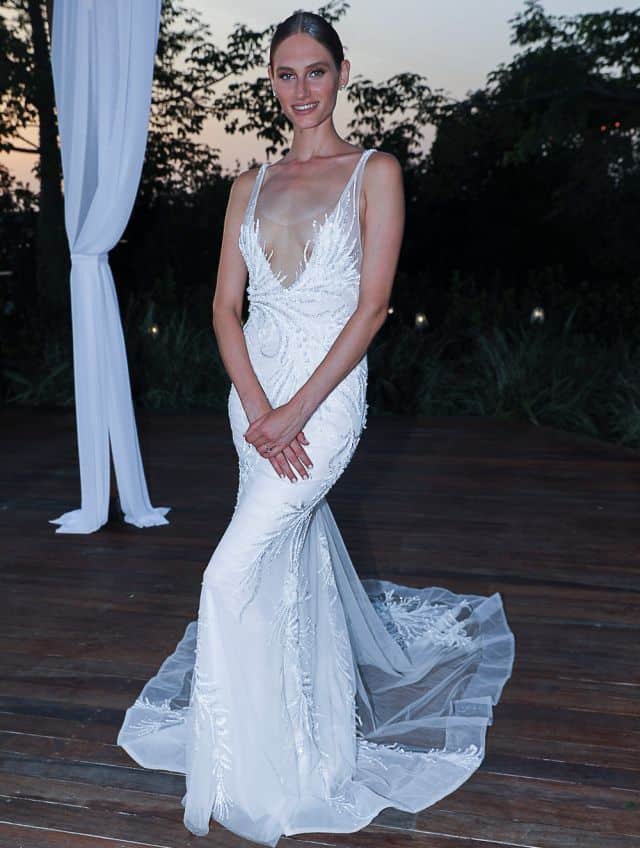 הדוגמנית והשחקנית המצליחה נועם פרוסט התחתנה בסופשבוע האחרון , כשהיא לבושה בשתי שמלות מרהיבות של המעצבת הבינלאומית "ברטה". נועם בחרה בסגנון רומנטי, קלאסי אבל עדיין סקסי ומיוחד. לשמלה הראשונה בחרה שמלה מקולקציית 2019, עם משחקי שקיפויות, דיטיילים מחורזים בעבודת יד המטפסים על הגוף, גב פתוח ושובל מרשים. לכניסה לחופה בחרה בעליונית מרשימה שנתנה אפקט נוסף של גלאם. לשמלה השניה בחרה שמלה נשפכת בגזרת קולר, מחורזת כולה ורקומה באפליקציות בעבודת יד, עם פתח גב עמוק ושסעים עמוקים בחצאית העשויה ממשי.