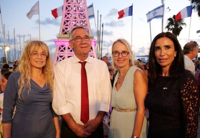 עיריית הרצליה והחברה לפיתוח תיירות, אירחו במרינה הרצליה את חגיגות יום העצמאות (יום הבסטיליה). משה פדלון ראש עיריית הרצליה, וסגניתו עפרה בל,  אירחו לראשונה במרינה הרצליה את יום הבסטיליה, שנערך במעמד שגרירת צרפת הלן לה גאל, קונסולית צרפת פלורנס מיוראל, קונסולית הכבוד של צרפת נטלי מימון, לצד אנשי עסקים מובילים, שגרירים ואלפי מבקרים שנהנו מאווירה פריזאית וממגדל אייפל שהוצב במרינה לרגל האירוע. המבקרים נהנו משיריו של הזמר הבינלאומי מרשאל מרין, עם  מיטב השנסונים הצרפתיים הקלאסיים, ומאוכל צרפתי משובח מבית השף גיא פרץ. בסיום האירוע עלו האורחים מצרפת לצד ראש העיר וסגניתו לבמה, ושרו יחד את ההמנון הישראלי ואת ההמנון הצרפתי, כשדגלי צרפת וישראל מתנופפים באוויר. מימין: קונסולית הכבוד של צרפת בישראל נטלי מימון, שגרירת צרפת בישראל הלן לה גאל, ראש העיר משה פדלון   ועפרה בל סגנית ראש העיר.