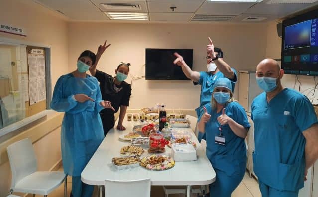 האחות ליאת וקנין, אחראית מרפאת פרסונל של רמב״ם, ומי שידיה עמוסות קורונה בחודש האחרון, בכל הקשור לבטיחות ומיגון 5000 עובדי רמב״ם, החליטה לפנק את הצוותים. היא מילאה את הרכב בכמה עשרות קילוגרמים של ממתקי מימונה, שהכינו כמה קבוצות נשים, וחילקה ברמב״ם: במיון, במחלקת קורונה, למאבטחים ובמחלקות נוספות.