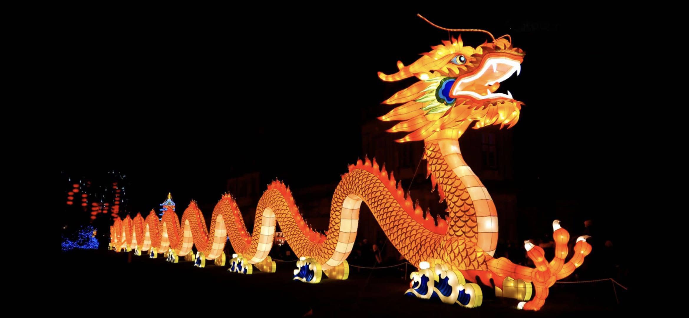 דרקון באורך 30 מ' בפסטיבל האורות הבינלאומי אוגוסט בנמל תל אביב, פתוח לקהל הרחב. צילום יחצ