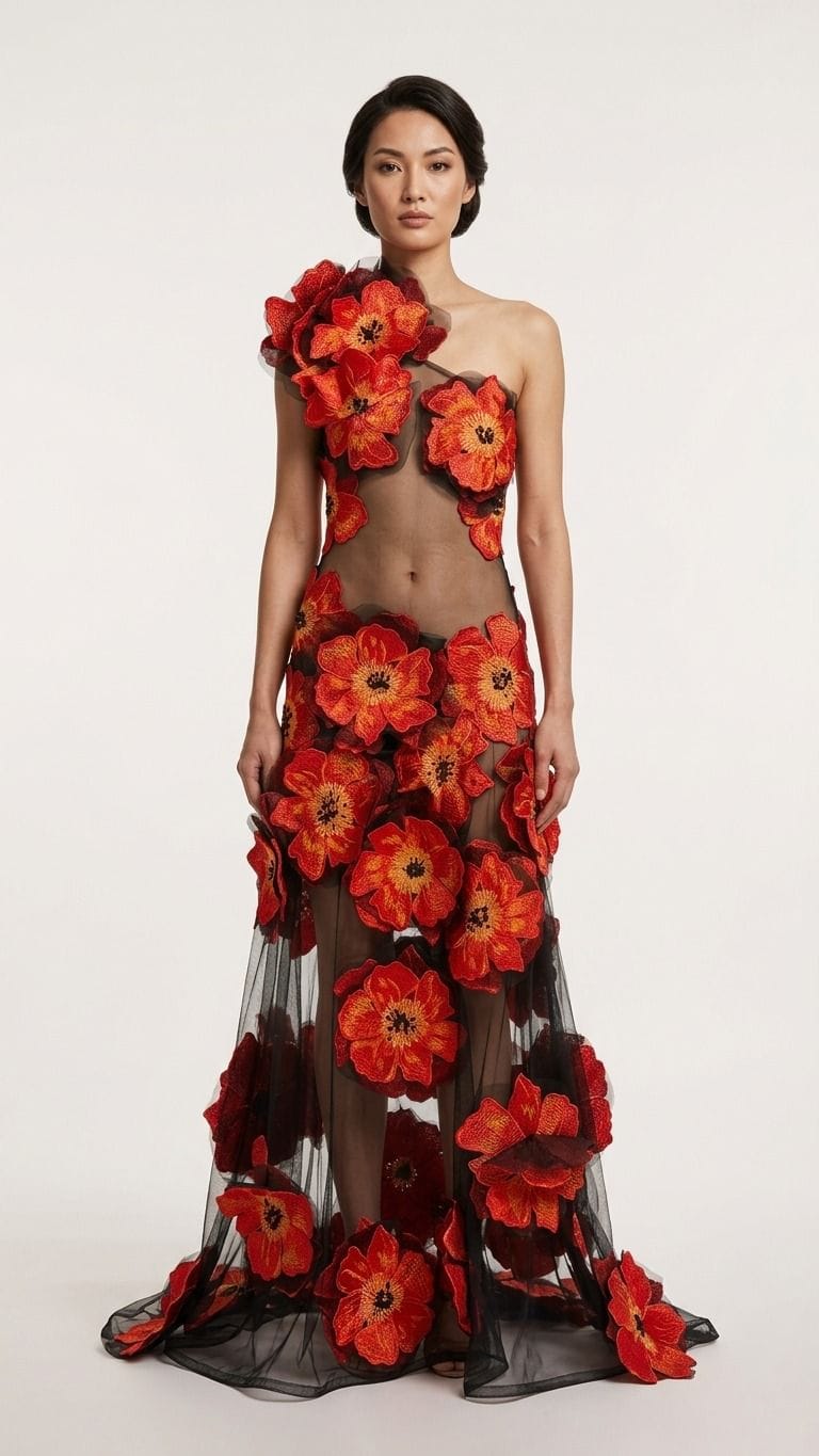 השמלה שנוצרה במיוחד עבור התערוכה נועדה לבטא את כוחה של האופנה הישראלית בזירה העולמית. היצירה, המכונה "שמלת הכלניות", נושאת משמעות עמוקה שנולדה מתוך רצון להנציח את אירועי ה-7 באוקטובר ואת הטבח הקשה ביישובי הדרום.