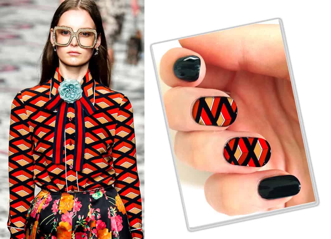 פריחה חורפית: בקטגוריית ההדפסים, פרחים הם דרך טובה לביטוי עצמי דרך נייל ארט במיוחד כשיש רצון לאמירה יצירתית. העונה הדפסי הפרחים ממשיכים מהקיץ אל העונה הקרה כשפלטות הצבעים הופכות לכהות יותר עם גוונים כמו בורדו או ירוק עמוק ונגיעות של שחור. במגוון: הדפסי פרחים קפדניים, שילובים בוטניים הכוללים עלים המזכירים זרי פרחים עמוסים ולבלוב של פרחים כהים.