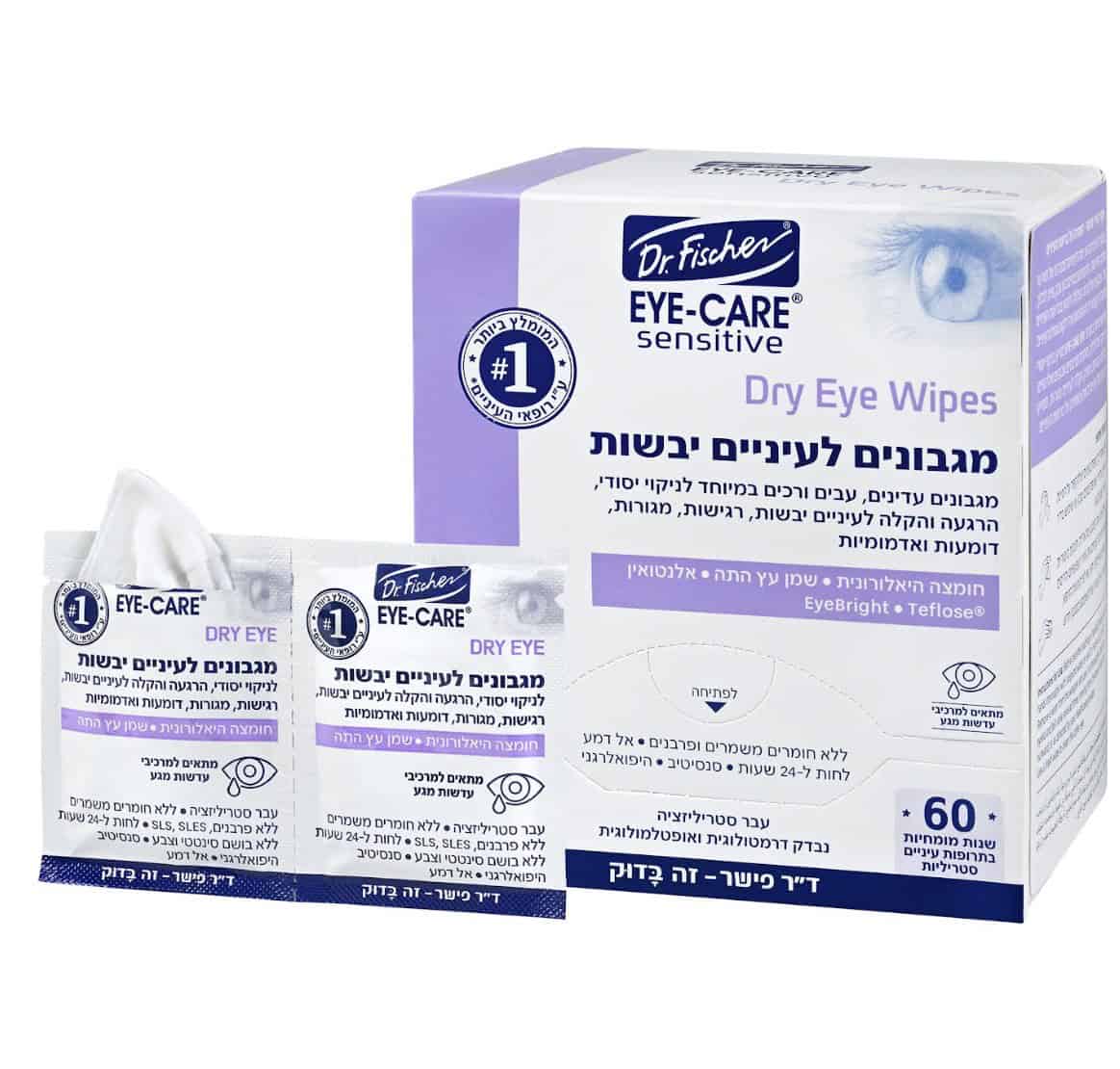 בנוסף, העיניים הן מהאזורים הרגישים ביותר בזמן פעילות בשטח. מגבוני EYE-CARE נועדו לניקוי יסודי של אזור העפעפיים והריסים ולהקלה על גירויים בעיניים. המגבונים פותחו במעבדות המחקר של ד”ר פישר, המומחים בפיתוח תרופות עיניים סטריליות מזה כ־60 שנה, והם מגיעים באריזות סטריליות אישיות. הם מסייעים בניקוי הפרשות, אבק ולכלוך ומעניקים הקלה לעיניים עייפות ומאומצות.