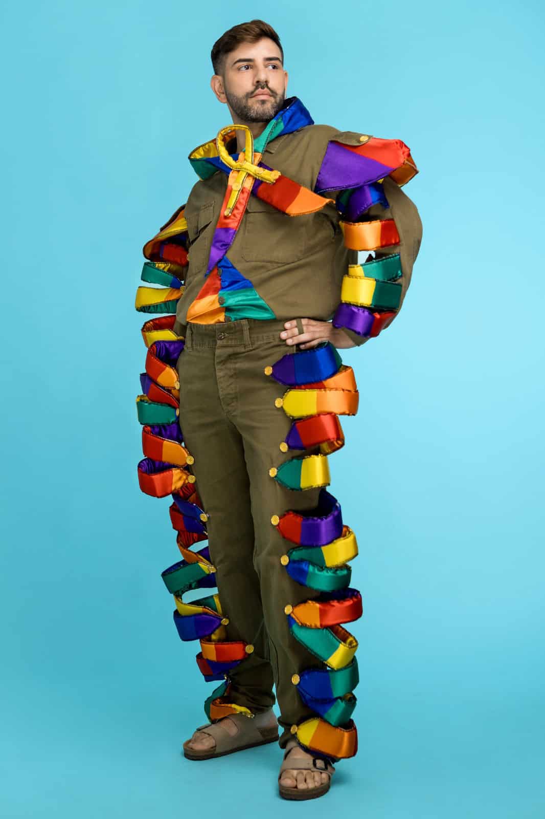 יואב מאיר וגילי סיוון, אוצרי התערוכה, מסבירים את הרעיון מאחורי העיצובים: "מיזוג מדי הצבא עם דגל הגאווה אשר מייצג שילוב עוצמתי של משמעת, כוח והכלה. הלבוש החדשני הזה משלב את האלמנטים המובנים והסמכותיים של אסתטיקה צבאית – כיסים, כותפות ואריג בצבע זית – עם צבעי הקשת התוססים של דגל הגאווה, המסמל גיוון, קבלה ואחדות. האיחוד הזה לא רק מכבד את המחויבות והחוסן של אלה בשירות צבאי אלא גם מקדם באומץ את ערכי השוויון והכבוד לקהילת הלהט"ב. על ידי לבישת עיצוב כזה, אנשים מעבירים מסר של סולידריות ומחויבות להילחם למען הזכויות וההכרה של כל האנשים, ללא קשר לנטייה מינית או זהות מגדרית, ובכך מגלמים גישה מודרנית וכוללת לסמכות"
