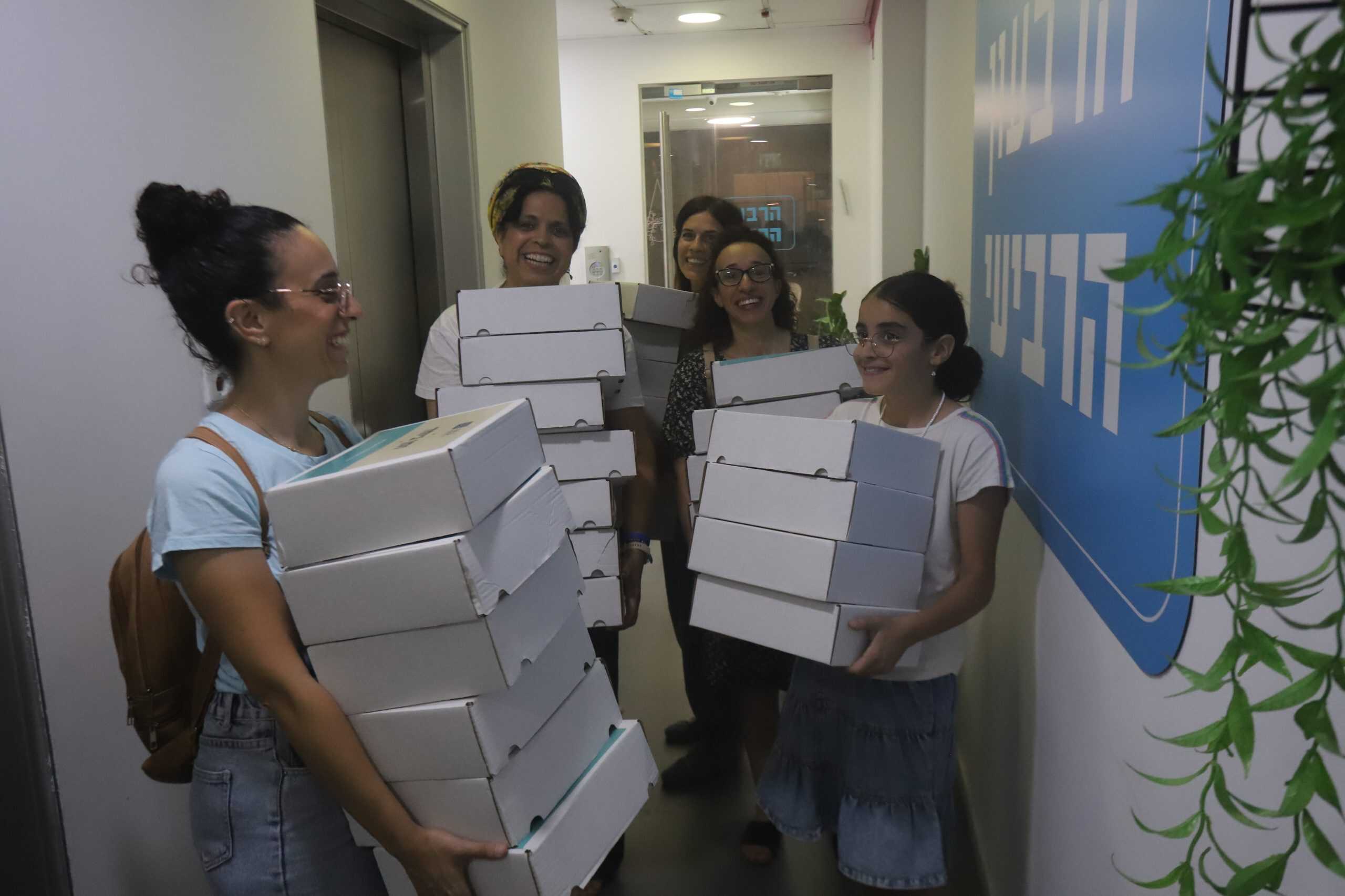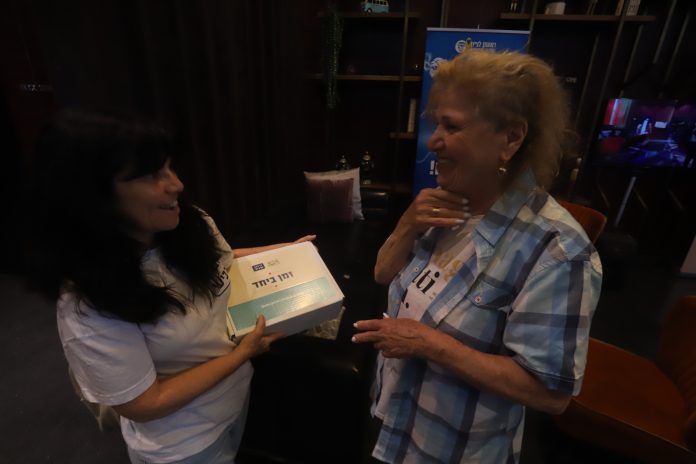 שירלי אורזת ערכות הפוגה למשפחות המפונים