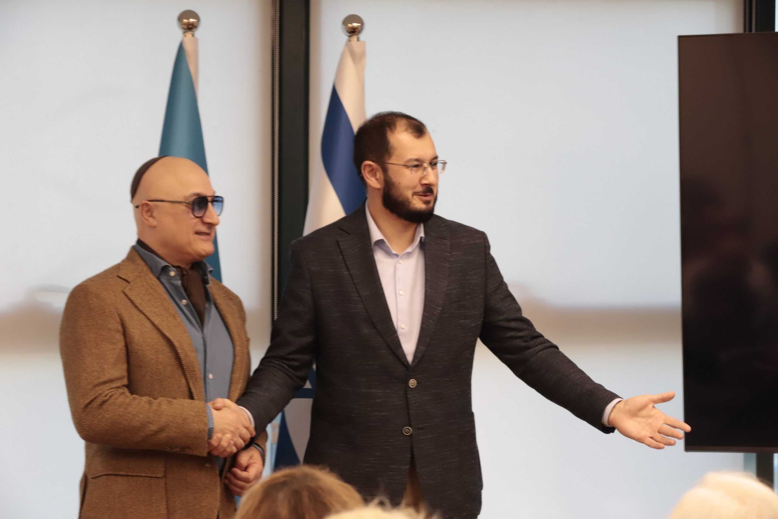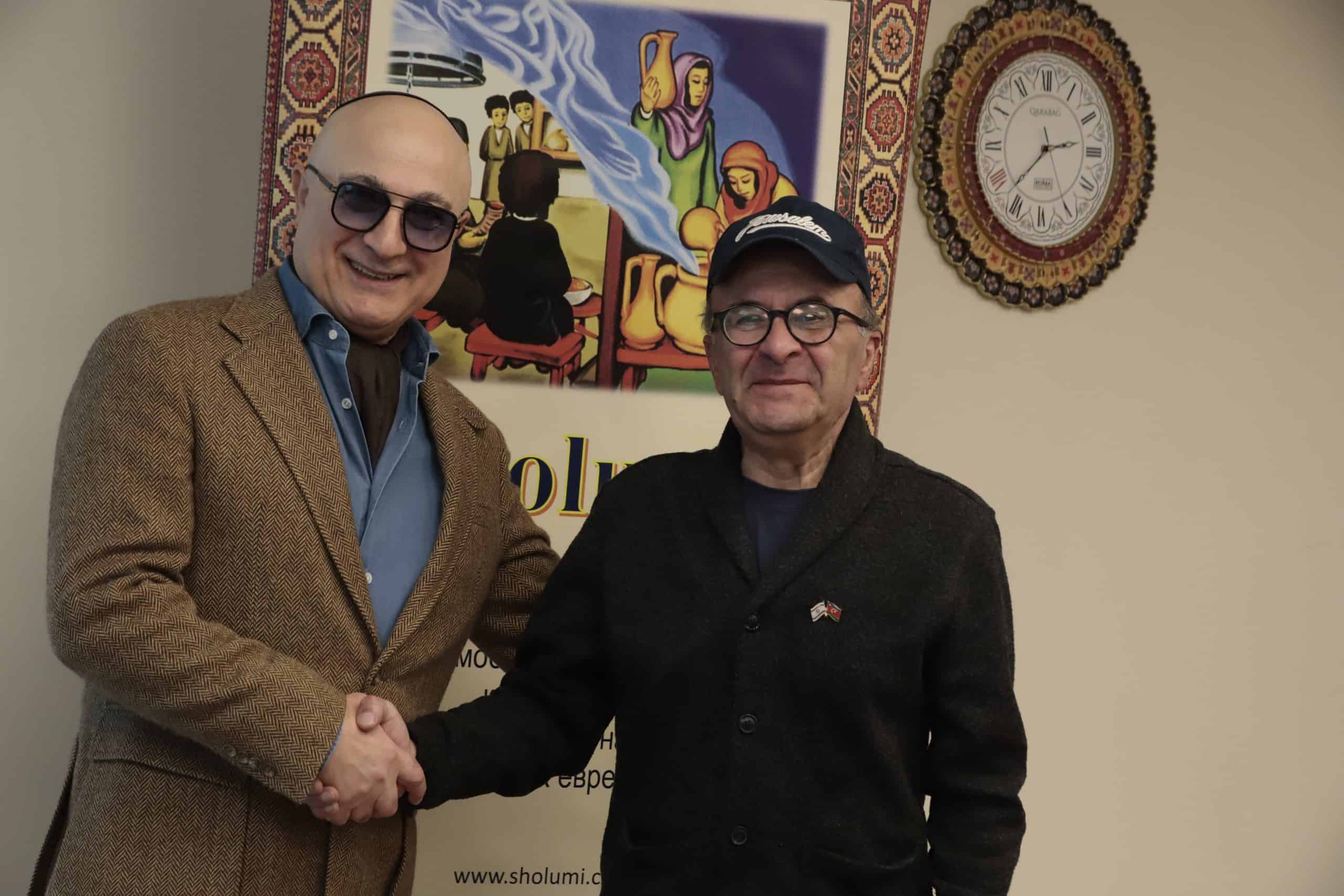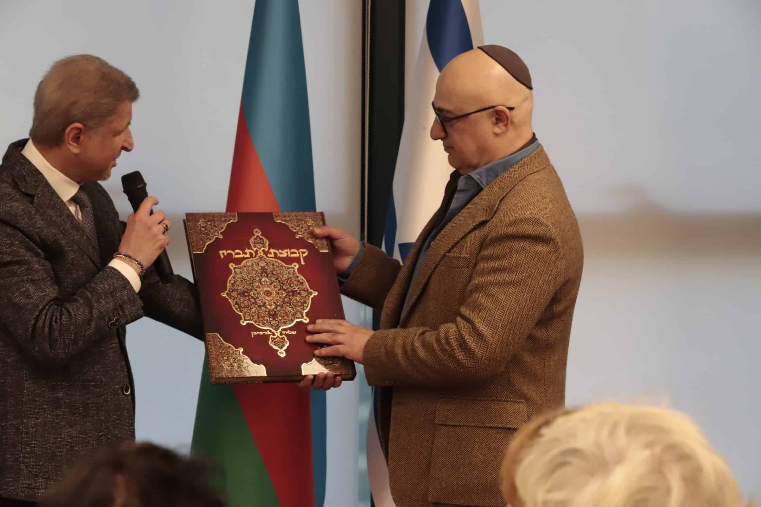 מימין: האמן אלברט רפייב מקבל אות הוקרה עבור פעילותו למען יהדות אזרבייג'אן בשבוע שעבר