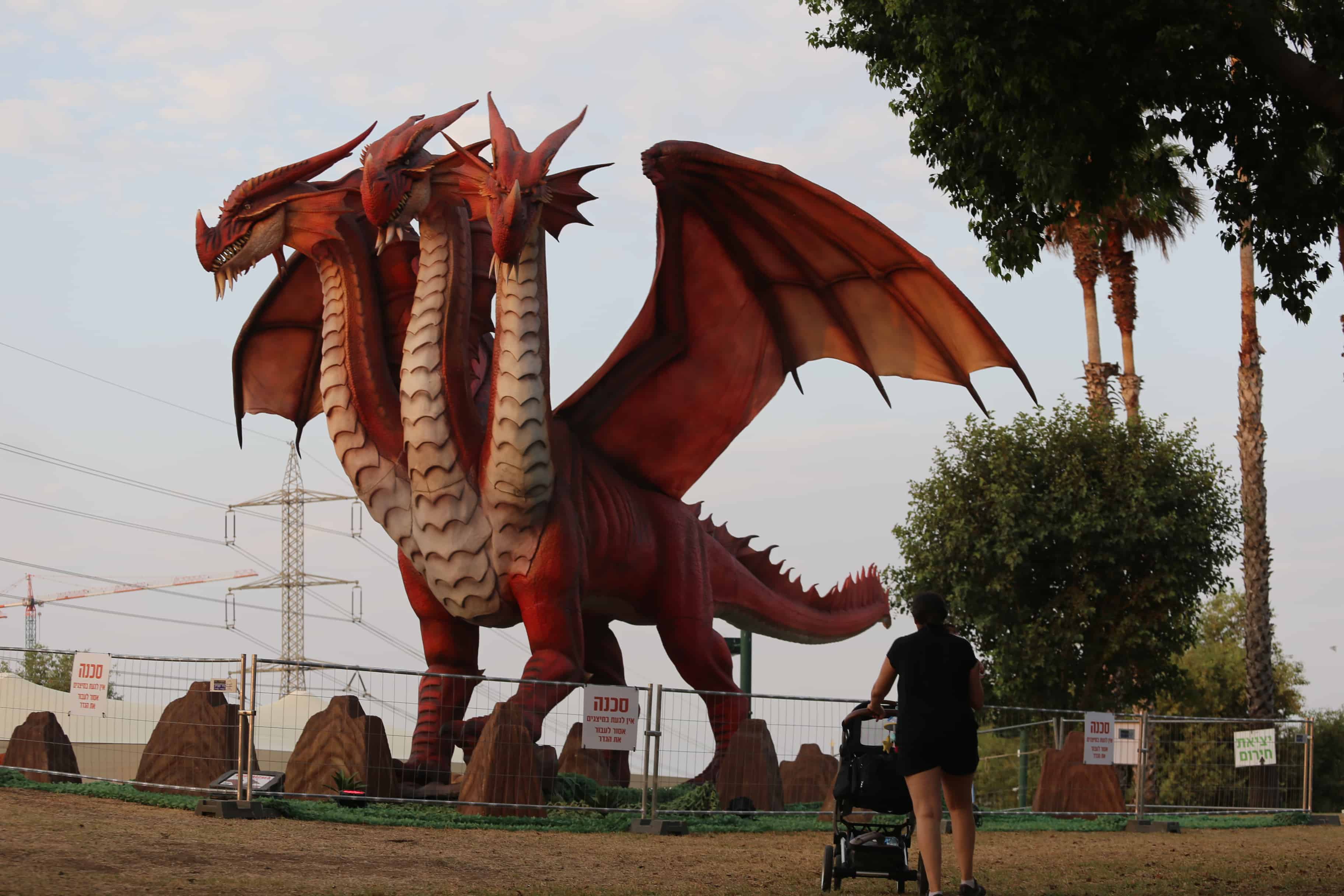 תערוכת דרקוני ענק מהאגדות, עץ מדבר וחד קרן יפיפה. עולם מרהיב של חיות קסומות המתעוררות לחיים בין שבילי הפארק של דרגון לנד בלב פארק הירקון