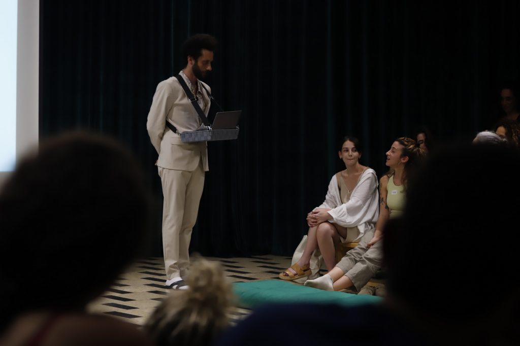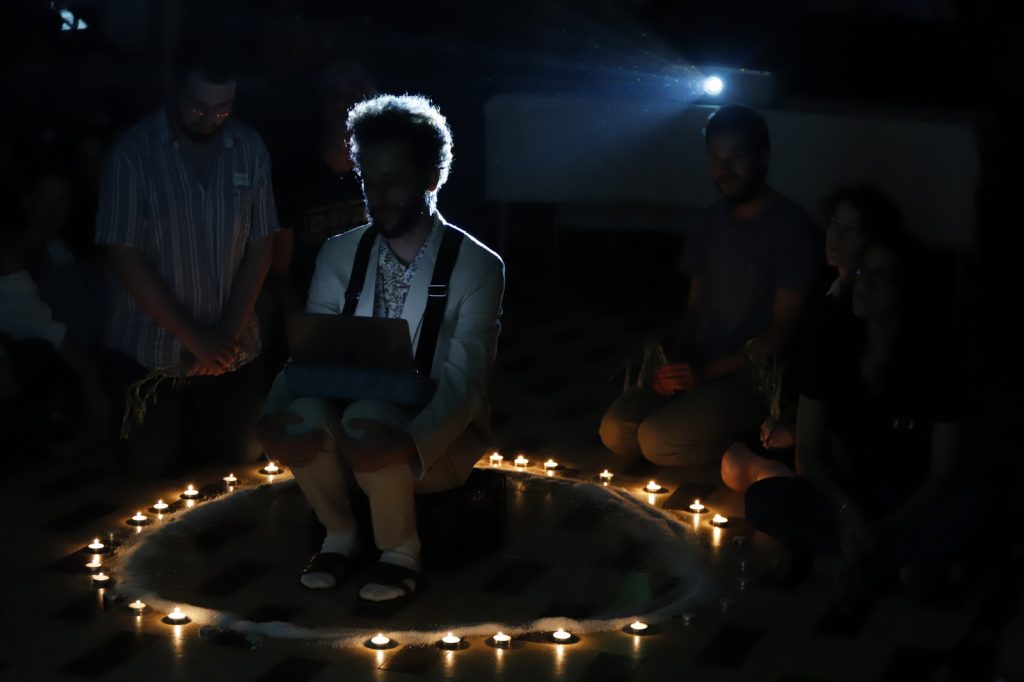 בבית כנסת נטוש בלב תל אביב קיימו בשבוע שעבר 'סיאנס דיגיטלי' עם נרות, מקרן ותוכנת הבינה המלאכותית – chatGPT בו האמן אריאל ברונז 'מעלה באוב' אווטאר בן דמותו של אביו ומבקש ממנו לחשוף סוד אפל מעברו.