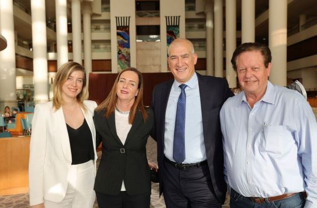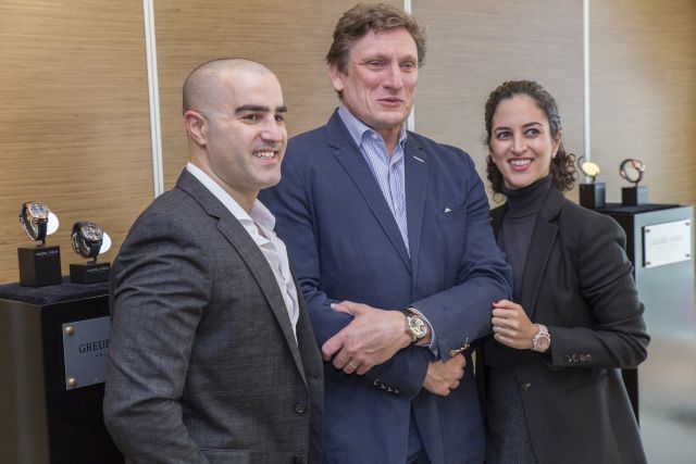 משפחת יונסוף הבעלים של רשת JB תכשיטנים ושופארד בישראל, משיקים שיתוף פעולה חד פעמי עם מותג שענות העילית השוויצרי Greubel Forsey שהוליד שעון יחיד וייחודי, אותו תוכלו למצוא רק בישראל ומחירו 1.1 מיליון ₪. בתמונה: נטלי יונסוף , סטיבן פורסיי ונאור יונסוף.