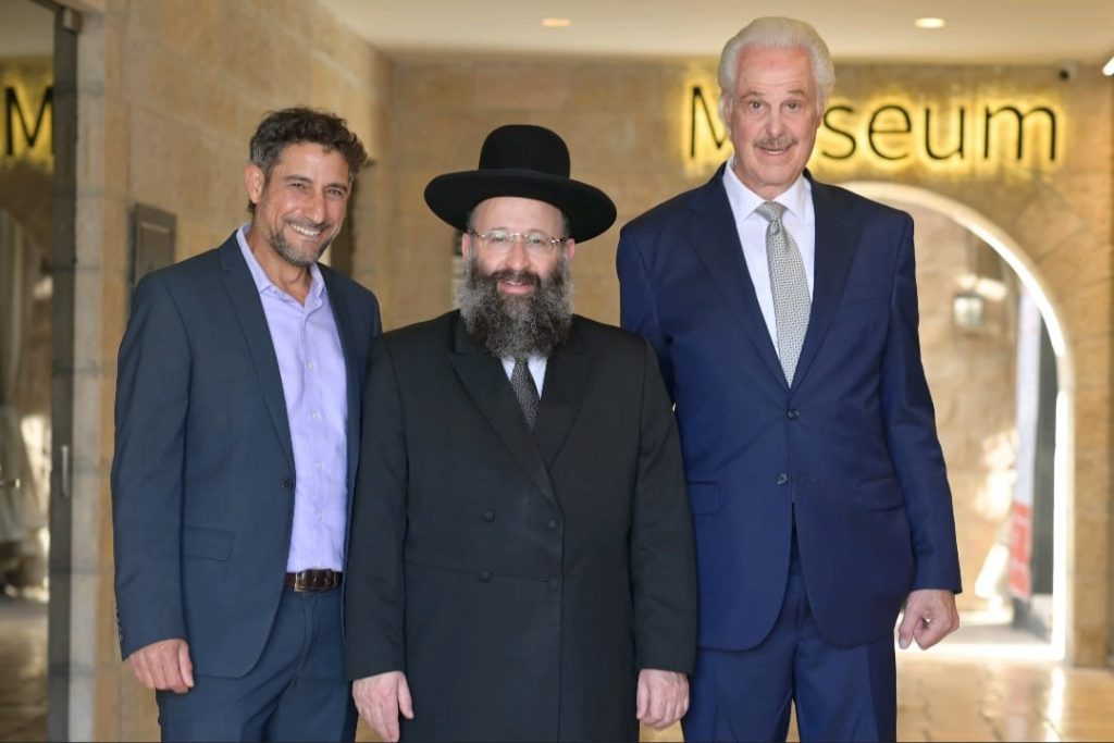 הרב רבינוביץ התרגש מאד מהתערוכה ואמר "כל ילד/ה נער/ה במדינת ישראל חייבים להגיע לכאן ולעבור במוזיאון ובתערוכה. אני מודה לד"ר מייק אוונס, ידידי היקר, על פועלו למען מדינת ישראל ולמען שורדי ושורדות השואה בארץ ובעולם". בתמונה מימין לשמאל ד"ר מייק אונס, הרב שמואל רבינוביץ ועו"ד ניר קמחי דירקטור המוזיאון.