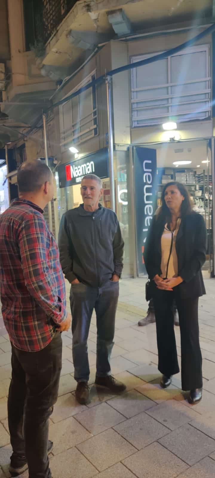 השבוע סיעת "תושבי העיר" בראשות סיגל ויצמן והאלוף במיל. יאיר גולן נפגשו עם בעלי עסקים באלנבי. נתקלו בכבישים חסומים, קהל מדיר רגליו, עסקים במצוקה. בעלי חנויות מביאים את הסחורה בשקיות בידיהם כי אין גישה ברכב לחנויות. סיעת תושבי העיר והאלוף במיל. יאיר גולן הקשיבו לקשיים של בעלי העסקים מזה תקופה ארוכה בה נחפר הקו הסגול של הרכבת הקלה. הרחוב נסגר לארבע שנים, אין גישה ועדין דו״חות מחולקים גם לרוכבי אופנים.