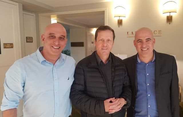 בוז'י הרצוג יושב ראש הסוכנות היהודית, התארח במושבה ראש פינה ליום ביקור וסיור. מוטי חטיאל ראש המועצה המקומית ראש פינה בחר לקיים את הכנס לאנשי הסוכנות וליו"ר באולם הכנסים במלון אדמונד החדש במושבה. במהלך הביקור נפגש מנכ"ל המלון עומר פורת עם ראש המועצה ועם יו"ר הסוכנות והודה להם על הביקור. בתמונה: עומר פורת, בוזי הרצוג ומוטי חטיאל.