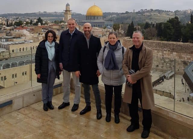 אורלי נשיץ קונסול הכבוד הכללי של איסלנד בישראל, היא קונסולית הכבוד היחידה שליוותה ראש מדינה בפורום השואה העולמי החמישי שיתקיים ביד ושם. נשיא איסלנד גודני יוהנסון הגיע לישראל לפורום השואה העולמי, ובמהלך היום ביקר במקומות הקדושים בירושלים, קיבל הסבר על פועלו של הנשיא בן צבי ממדריך הטיולים, ערך פגישות עם חברות סטארט-אפ ונפגש עם נשיא המדינה ראובן ריבלין. בתמונה מימין לשמאל: אלון רות שניר שגריר ישראל לאיסלנד, זהבית בן הלל נציגת משרד החוץ, יונתן המדריך, גודני יוהנסון נשיא איסלנד ואורלי נשיץ.