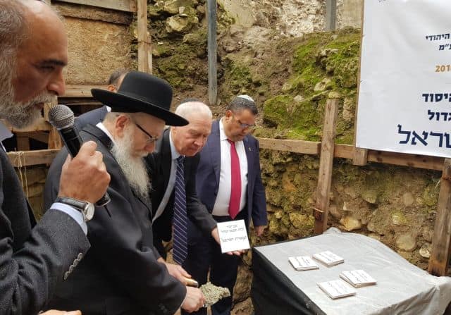 השבוע הונחה אבן היסוד בבית כנסת תפארת ישראל ברובע היהודי בירושלים, במעמד שר השיכון והבינוי יואב גלנט, שר ירושלים ומורשת והשר לאיכות הסביבה זאב אלקין, סגן שר הבריאות יעקב ליצמן וראש העיר ירושלים רו"ח משה ליאון. החברה לשיקום ופיתוח הרובע היהודי בירושלים אחראית על שיקום ושיחזור בית הכנסת תפארת ישראל. לפני כארבע שנים החלו במקום עבודות חפירה ארכיאולוגיות שנעשו על ידי רשות העתיקות, בראשות הארכיאולוג אורן גוטפלד. בשנה האחרונה ולאחר סיום החפירות הארכיאולוגיות, פונו על ידי החברה לשיקום ופיתוח הרובע היהודי כ- 3,500 טון חומר ואבן באופן ידני בכדי לא לפגוע במקום, וכעת מתחילות עבודות השיקום והשחזור של בית הכנסת, שצפוי, על פי התכנונים להתנשא לגובה של 25 מטר. העבודות צפויות להתפרס על פני 4 שנים. העלות הכוללת של הפרויקט נאמדות בכ-50 מיליון ₪. מוטי רינקוב, יו"ר הדירקטוריון בחברה לשיקום ופיתוח הרובע היהודי בירושלים: "זהו אחד הפרויקטים היותר חשובים ומרגשים שנטלתי בהם חלק – בניית בית הכנסת מחדש היא למעשה כהרמת דגל ישראל ברובע היהודי".