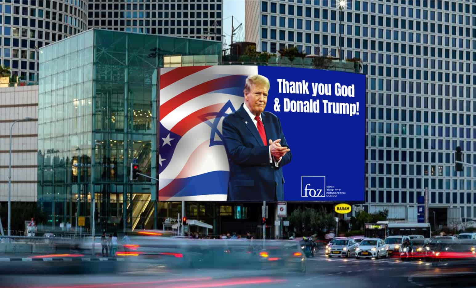 השלטים, הנושאים את תמונתו של נשיא ארצות הברית דונלד טראמפ, הוצבו בצירים ובצמתים מרכזיים בירושלים ובתל אביב ומבקשים להביע תודה והוקרה לנשיא טראמפ על תמיכתו המתמשכת במדינת ישראל ועל עמידתו לצד ישראל בשעה קריטית זו.