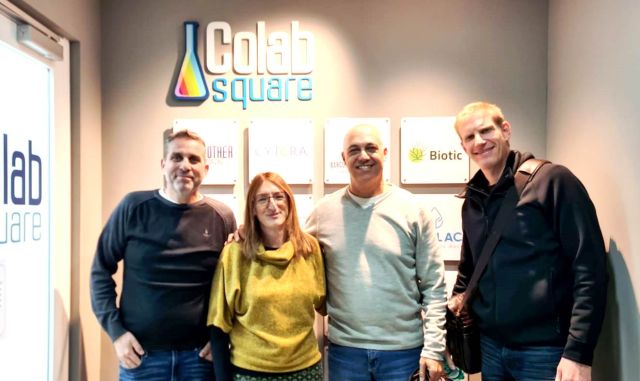 קולאב סקוור, המספקת ליזמים וסטארט אפים בתחום מדעי החיים את כל התשתית הנדרשת לתחילת פעילות מחקר ופיתוח ליבה, והחברה לנכסי קיסריה אדמונד בנימין דה רוטשילד, חתמו על הסכם שכירות, לפיו תשכור קולאב סקוור שטח של כ-1,300 מ"ר ב'קמפוס גרניט' בפארק העסקים החכם בקיסריה. במעמד החתימה בהשתתפות ישי קרניאל, מנהל הנכסים, ואורן זילברשטיין, מנהל אגף המניבים בחברה לנכסי קיסריה, ציינו ירון ברייטמן, מנכ"ל קולאב סקוור, וד"ר סלעית צבאן, סמנכ"לית הטכנולוגיות, כי מטרתם הראשונה היא לאפשר ולהנגיש לחברות צעירות – אשר מגבלות זמן, תקציב ורגולציה מתעלות אותן במקרים רבים לפתרונות תת-אופטימליים – סביבת עבודה מעולה בסטנדרטים של חברות גדולות. בתמונה מימין לשמאל: ישי קרניאל, ירון ברייטמן, ד"ר סלעית צבאן ואורן זילברשטיין