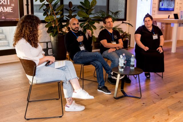 השבוע התקיים במשרדי חברת ההייטק סולוטו, אירוע הסיום של תוכנית הבוטקאמפ של עמותת תפוח. בוגרות ובוגרי התוכנית, קיבלו בתום האירוע תעודות סיום מטעם העמותה, הפועלת בפריפריה הגיאוגרפית והחברתית של ישראל, במטרה לצמצם פערים בחברה הישראלית. בתמונה (מימין לשמאל): מפתחת התוכנה שני טייטלבאום והארכיטקטים רן בר זיק וסרי אלאלם מסולוטו ומנחת הפאנל והמלווה התעסוקתית של התוכנית, מורן כץ.