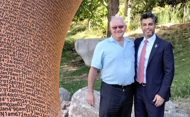 השגריר הראשון בישראל לאיחוד האמירויות מוחמד אל קאג'ה ביקר בגן הבוטני האוניברסיטאי בגבעת רם. הוא התקבל על ידי יו"ר הגן, אלן ברקלי והמנהלת האקזקוטיבית של הגן חנה רנדל. לשגריר היתה הזדמנות נפלאה לבקר בתערוכה הבינלאומית של מציאות רבודה  'לראות את הבלתי נראה' בה מוצגת גם עבודתו של האמן מדובאי מוחמד קאזם "כיוונים". בתמונה מימין לשמאל: שגריר איחוד האמירויות עם יו"ר הגן אלן ברקלי.