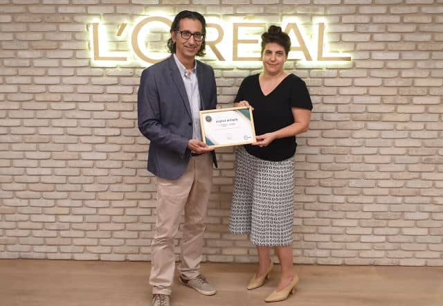 כחלק מתכנית הקיימות הגלובלית של קבוצת לוריאל לעשור הקרוב ׳לוריאל למען העתיד׳, הקימה הקבוצה לפני כשנה קרן עולמית למען נשים הנמצאות בסיכון בכל העולם. השבוע נפגשו יפעת ברון, מנכ"לית עמותת itworks ואלי שגיב, מנכ"ל לוריאל ישראל, במשרדי לוריאל ישראל בנתניה.במפגש העניקה יפעת ברון תעודת הוקרה מיוחדת לקבוצת לוריאל, על תמיכתה בפרויקט של עמותת itworks להחזרת נשים חד הוריות למעגל התעסוקה. בתמונה מימין: יפעת ברון ואלי שגיב.