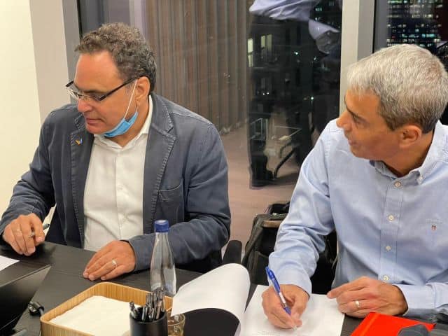 פגישה נערכה בין ראשי המכביה ה-21: רואי הסינג מנכ"ל המכביה ואריק זאבי יו"ר המכביה, עם שר תיירות יואל רזבוזוב בנושא ההכנות למכביה ה-21 שישתפתח ב-21 ליולי 2022 באצטדיון טדי ירושלים, ואליה צפויים להגיע כ-25,000 יהודים מ-85 מדינות ברחבי העולם, מתוכם כ-10,000 ספורטאים. בתמונה: בתמונה מימן לשמאל : רואי הסינג מנכ"ל המכביה ה-21, שר תיירות יואל רזבוזוב ואריק זאבי יו"ר המכביה.