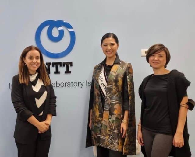 מעבדת החדשנות בישראל של התאגיד היפני NTT אירחה את מיס יפן ג'ורי ווטנבה (Juri Watanabe), אשר השתתפה וייצגה את יפן בתחרות מיס יוניברס שהתקיימה בישראל, באירוע מצומצם לנשות עסקים, הנערך בשיתוף עם New IJ,ארגון נשים ישראל-יפן. באירוע הציגו למיס יפן את זירת ההי-טק בישראל ואת חשיבות שיתוף הפעולה העסקי שמתקיים עם מדינתה ומתחזק משנה לשנה. הנשים שהשתתפו באירוע נהנו משיחת פאנל עסקי ואף ניסו את קעקועי הריח של חברת Amkiri. בין המשתתפות: נועה אשר מנכ"לית מעבדת החדשנות NTT Innovation Laboratory Israel, הילה שביב מנכ"לית חברת טוליפון אנג'לה רבינוביץ VP פיתוח עיסקי באינוביטק, יפעת פלידרמן סמנכ"לית תפעול חברת אמקירי, כנרת מילר דירקטורית ומנהלת פיתוח עסקי במעבדת החדשנות של NTT בישראל ועוד. בתמונה (מימין): אנג'לה רבינוביץ, מיס יפן ג'ורי ווטנבה ונועה אשר.