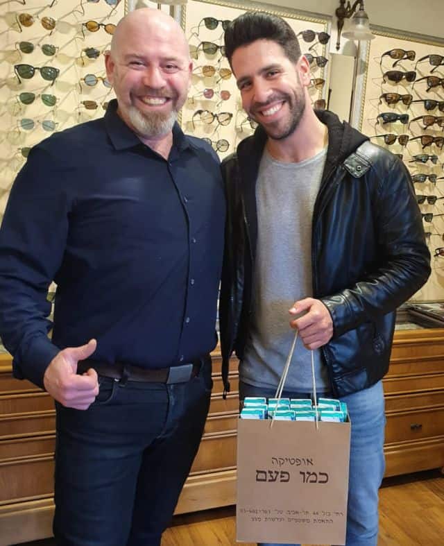 השחקן, הקומיקאי וכוכב "ארץ נהדרת" אורי לייזרוביץ, הגיע לאופטיקה "כמו פעם" בתל אביב, שם נפגש עם שי ושיר-לי גרינברג, אופטומטריסטים ובעלי האופטיקה. לייזרוביץ הגיע במטרה להתאים לעצמו עדשות מגע לעיניים, אשר יהיו איכותיות ובחר בעדשות המגע היומיות של ALCON. בתמונה: אורי לייזרוביץ ושי גרינברג.