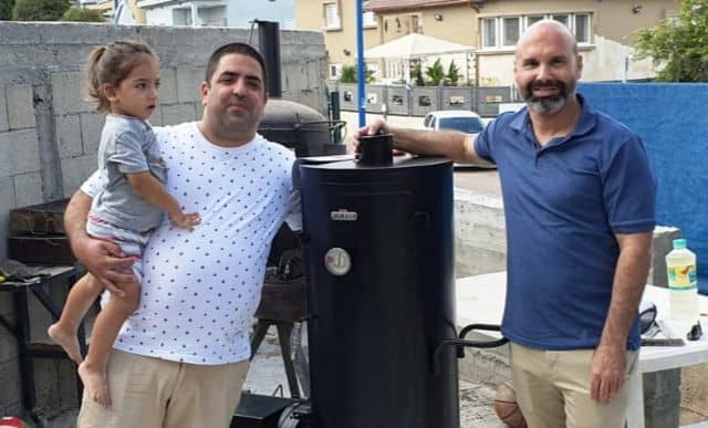 חצר משפחת טוויטו בשדרות ספגה בשבת האחרונה פגיעה ישירה של רקטה. למרבה המזל הטיל התפוצץ בתוך מעשנת הבשר המשפחתית ולא היו נפגעים. מנכ"ל אמגזית יאיר לוי, התרגש לשמוע את אבי המשפחה איציק טוויטו, מספר על תחושות החשש של הילדים, והעובדה שההפגזה האחרונה הכריחה את המשפחה לבטל את התוכניות שתכננו לחופשה. השבוע התייצב מנכ"ל אמגזית בבית משפחת טוויטו עם מעשנת בשר איכותית ממגוון המעשנות שמשווקת החברה, והעניקה למשפחה כאות הערכה לעמידותם של תושבי שדרות ועוטף עזה במערכה הנמשכת. בתמונה מימין לשמאל: יאיר לוי, עם איציק טוויטו ובנו שילה.