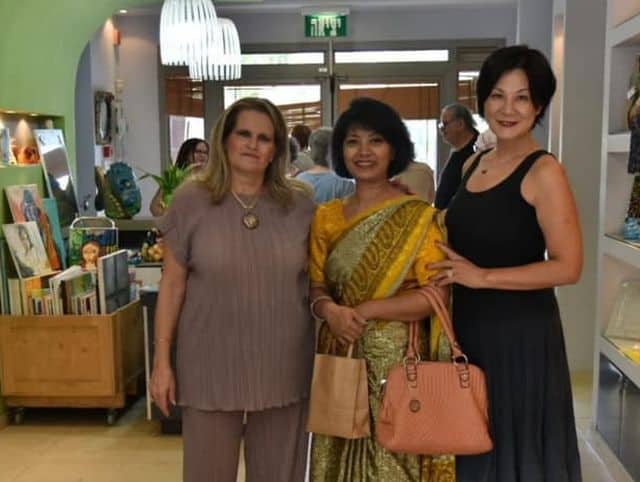 בית היוצר הינו מרכז אומנויות ייחודי, שהוקם ע"י עמותת דרור ועיריית רעננה, ומשלב אמנים המתמודדים עם משברים נפשיים ואמנים מהקהילה. למרכז מגיעים משתקמים בגילאים 18 ומעלה, כחלק מתוכנית שיקום  אישית, ומשתתפים בסדנאות זכוכית, קרמיקה, מוזאיקה וציור. השבוע ארגנה הגב' דניאלה אורן יו"ר חבר הנאמנים של עמותת דרור, ארוע הנקרא "בואו ניצור יחד", אשר כלל קונצרט נגינה וסדנה ליצירה, בה אורחת הכבוד היתה ד"ר אנג'אן שקאיה, שגרירת נפאל. בתמונה מימין: אנדראה ייפ מארגון הנשים הבינלאומי, שגרירת נפאל ד"ר אנג'אן שאקיה ודניאלה אורן יו"ר חבר הנאמנים.