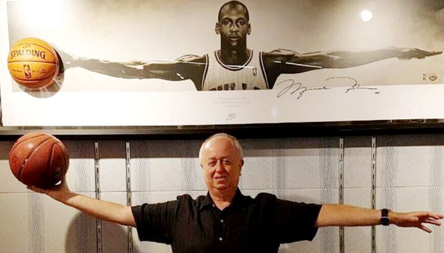 ערב פתיחת עונת ה-NBA החדשה, ביקר יועץ התקשורת צבי וילדר בחנות הדגל של ה-NBA בשדרה החמישית בניו יורק, והצטלם בפוזה של מייקל ג'ורדן. בתמונה: יועץ התקשורת צבי וילדר ומייקל ג'ורדן.