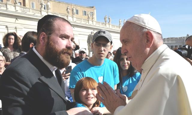 משלחת ישראלית מארגון 'רחשי לב' המסייע לילדים חולי סרטן ובני משפחותיהם, נפגשה בוותיקן עם האפיפיור, הציגה בפניו את פעילות הארגון והעניקה לו במתנה שי מיוחד: אלבום ובו ציורים שציירו עשרות ילדים חולי סרטן מרחבי הארץ המביעים תקווה לשלום ולבריאות. "תתפלל בירושלים עליי ועל כל הילדים בעולם", ביקש האפיפיור ממנכ"ל הארגון שימי גשייד שאמר לו שהוא מקווה ומייחל שהאחווה בין כל הילדים בני כל העמים, תהיה לא רק במחלקות האונקולוגיות אלא בכל העולם. את המשלחת מטעם ארגון 'רחשי לב', המציין השנה את שנת ה-30 להיווסדו ומסייע מדי שנה לאלפי ילדים ובני משפחותיהם, ייצגו בכירי ההנהלה ועימם שלושה ילדים חולי סרטן מישראל: יובל מור (19) מתל אביב, ביאן נאסר (18) מג'ת ואווה מוסמוביץ (8) מרמלה – שלושה ילדים בני שלוש דתות שונות, המייצגים מאות ילדים מישראל המתמודדים יום יום עם המחלה וקשייה. לאחר המפגש עם האפיפיור, המשיכה המשלחת למפגש עם נציגי הקהילה היהודית ברומא, בתוכם הרב שמואל ריקרדו דיסניי ונשיאת הקהילה היהודית ברומא רות דורגלו, אשר אירחו אותם בבית הכנסת הגדול והעתיק. הקבוצה ביקרה במוזיאון היהודי, ושמעה על ההיסטוריה הענפה של הקהילה היהודית ברומא. (צילום האפיפיור – Foto ©Vatican Media).