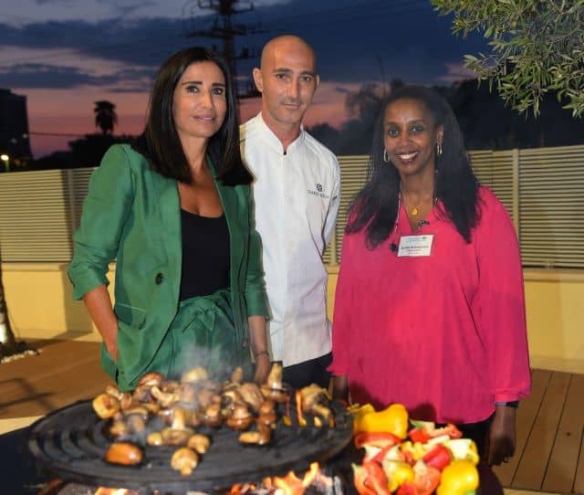 נטלי מימון קונסולית הכבוד של צרפת בישראל אירחה ביום חמישי האחרון בביתה שגרירים ונשותיהם לערב קולינרי על טהרת המטבח הישראלי. על האירוע ניצח השף צ'רלי פדידה יועץ קולינארי המשתתף קבוע בתוכניות אירוח בטלוויזיה, "צ'רלי בממלכת הדגים" מסע קולינרי בעקבות הדייג והדגה בארץ ובעולם ועוד. בין האורחים היו שגריר קרואטיה בישראל ורעייתו ויסאלה ומרקו קוראץ, ניננגה אשתו של שגריר האיחוד האירופאי המשותף עמנואל שופרה ושגריר רואנדה ואשתו. בתמונה מימין לשמאל: השף צ'רלי פדידה נטלי מימון קונסולית הכבוד של צרפת בישראל ונינגה אשת השגריר של האיחוד האירופאי עמנואל שופרה.