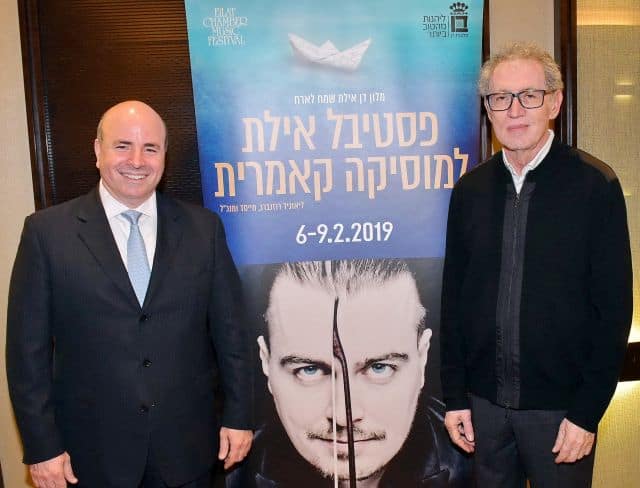רונן ניסנבאום מנכ"ל מלונות דן אירח את אירוע השקת פסטיבל אילת למוסיקה קאמרית, המתקיים זאת השנה השביעית ברציפות במלון דן אילת. באירוע שנערך במלון דן תל-אביב, השתתפו הנהלת פסטיבל אילת למוסיקה קאמרית בראשות לאוניד רוזנברג, הנהלת רשת מלונות דן נותנת החסות הראשית לפסטיבל, אמנים המשתתפים בפסטיבל השנה וביניהם דובל'ה גליקמן שיופיע בתפקיד באך בפסטיבל, והרקדנים ולאדה וסט (ישראל) וגראו קאודרדו (ספרד) כוכבי המופע "בית ברנרנדה אלבה" ועוד. האירוע כלל קבלת פנים, סרטון מיוחד על הפסטיבל המתקיים זאת השנה ה-14 ברציפות והשביעית במלון דן אילת, נאומים של רונן ניסנבאום, מנכ"ל מלונות דן ולאוניד רוזנברג, מנכ"ל פסטיבל אילת למוסיקה קאמרית. באירוע השתתפה צמרת רשת מלונות דן בראשות רונן ניסנבאום מנכ"ל הרשת, מוצ'ניק מנכ"ל מלון דן ואיתי אליעז מנכ"ל מלון דן תל אביב. כמו כן באירוע השתתפו בכירים מעיריית אילת, בראשות יוסי חן מנכ"ל תאגיד התיירות אילת. הפסטיבל יארח השנה הפקות מיוחדות בביצועי בכורה, זמרת האופרה קלייר מגנאג'י תארח את הזמר קובי אפללו במופע של תפילות וניגונים מבית אבא, ומקהלה ותזמורת הבארוק פ'דאם (הולנד) במופע עם השחקן דב גליקמן. בתמונה (מימין לשמאל): לאוניד רוזנברג מנכ"ל פסטיבל אילת למוסיקה קאמרית ורונן ניסנבאום מנכ"ל מלונות דן.