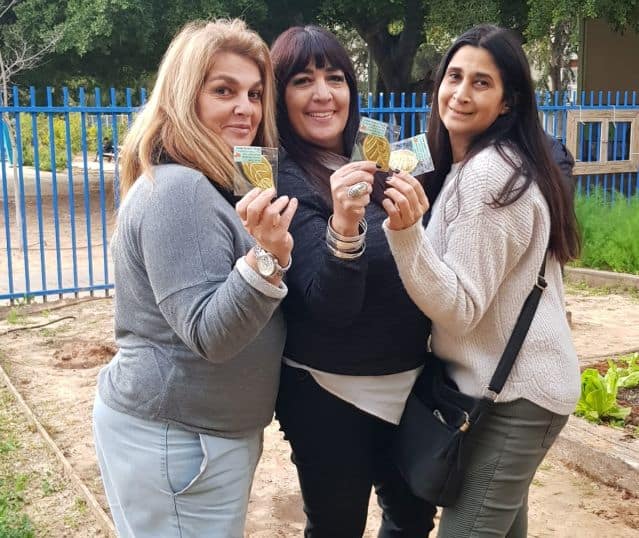 מנהלת "שירות לתושב" רמז כצנלסון, בניהולה של דבורה פרץ, הזמינה לקראת ט'ו בשבט 15 חניכי אקים סניף ראשון לציון, בשיתוף עם אורנה שלי מנהלת ביה"ס היסודי ידלין, וסמדר ביז'אווי רכזת חברתית של ביה"ס, לפעילות קהילתית משותפת בין תלמידי ביה"ס לבין חניכי אקי"ם. במסגרת הפעילות, החניכים והתלמידים אשר בעבר שתלו יחדיו שתילי ירקות, בט"ו בשבט שמחו מאד החברים מאקי"ם לקבל את היבול של כל מה ששתלו. בצילום: רוח'לה שמעוני רכזת מועדון נחלת אקים ראשון לציון, דבורה פרץ מנהלת שירות לתושב רמז כצנלסון, וסמדר ביז'אויי רכזת חברתית כיתה ד' בביה"ס ידלין.