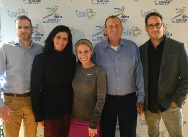 ראש עיריית תל אביב-יפו רון חולדאי חשף לראשונה השבוע את חולצת מרתון סמסונג תל אביב, במסיבת עיתונאים שהתקיימה השבוע בריברסייד (מרכז דניאל לחתירה) בתל אביב. לאירוע השקת המרתון שיתקיים ב22 בפברואר 2019, הגיעו גם אצנים בכירים, מנהל רשות הספורט בעיריית תל אביב-יפו מוטי אמברם וסגנו אופיר וגמן, יו"ר תחום הספורט בוועד האולימפי יעל ארד, שחר הירש מנכ"ל נייקי ישראל ורונן סלם סמנכ"ל השיווק של סמסונג ישראל. יעל ארד פרגנה לראש העירייה על ההשקעה הרבה בספורט בעיר, ואף גילתה שהיא נפגשת איתו מידי שבת בבוקר בפארק, כשהיא רצה עם קבוצת הריצה והוא עושה הליכה. רון חולדאי יחד עם מנכ"ל נייקי ישראל שחר הירש, חשפו את חולצת המרתוניסטים, שתהיה השנה בצבע שונה מהחולצה של שאר המקצים. חולדאי דיבר בגאווה על העלייה במספר הנשים המשתתפות במרתון מידי שנה, נתון שעומד כעת על 41%, וחשף את עלות המרתון שעומדת על למעלה מ- 13 מליון שקלים. בתמונה מימין לשמאל: שחר הירש מנכ"ל נייקי ישראל, רון חולדאי ראש העיר, ברכה דויטש מרתוניסטית, יעל ארד יו"ר הועד האולימפי בישראל ורונן סלם סמנכ"ל שיווק סמסונג ישראל.