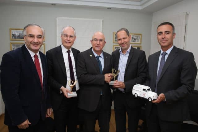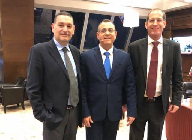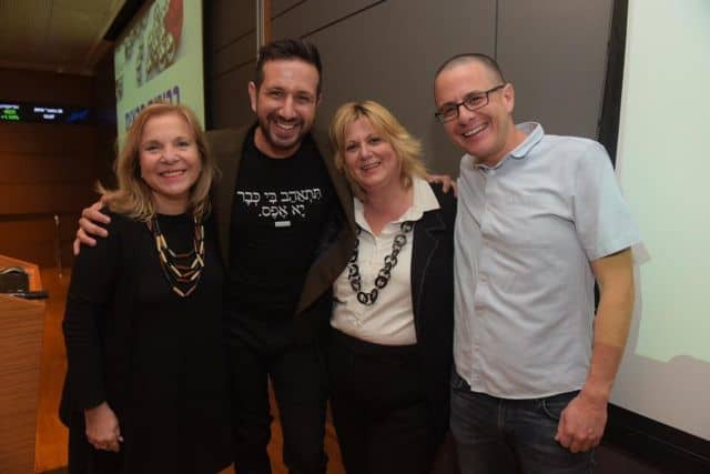 בכפר המכביה נערך לאחרונה ארוע לעובדי עיריית רמת גן בכפר בנוכחות ראש העיר כרמל שאמה הכהן, בהשתתפות ציפי שביט ואלי יצפאן. בתמונה: יצפאן עם ארי איני מנהל המלון ונדב גרינשפן מנכל כפר המכביה בטרקלין העסקים  במלון הסוויטות.