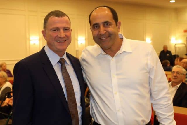 לקראת הבחירות לכנסת ה- 21 בישראל, נערך פאנל בחירות ברשת בתי הדיור המוגן 'עד 120' בתל אביב. את הפאנל הנחתה ליאת רגב, והשתתפו יו"ר הכנסת יולי אדלשטיין ממפלגת הליכוד, ח"כ סתיו שפיר ממפלגת העבודה ויועז הנדל ממפלגת 'כחול לבן'. בתמונה: יו"ר הכנסת (ח"כ) יואל (יולי) אדלשטיין עם מנכ"ל רשת 'עד 120' אבי קלפה.