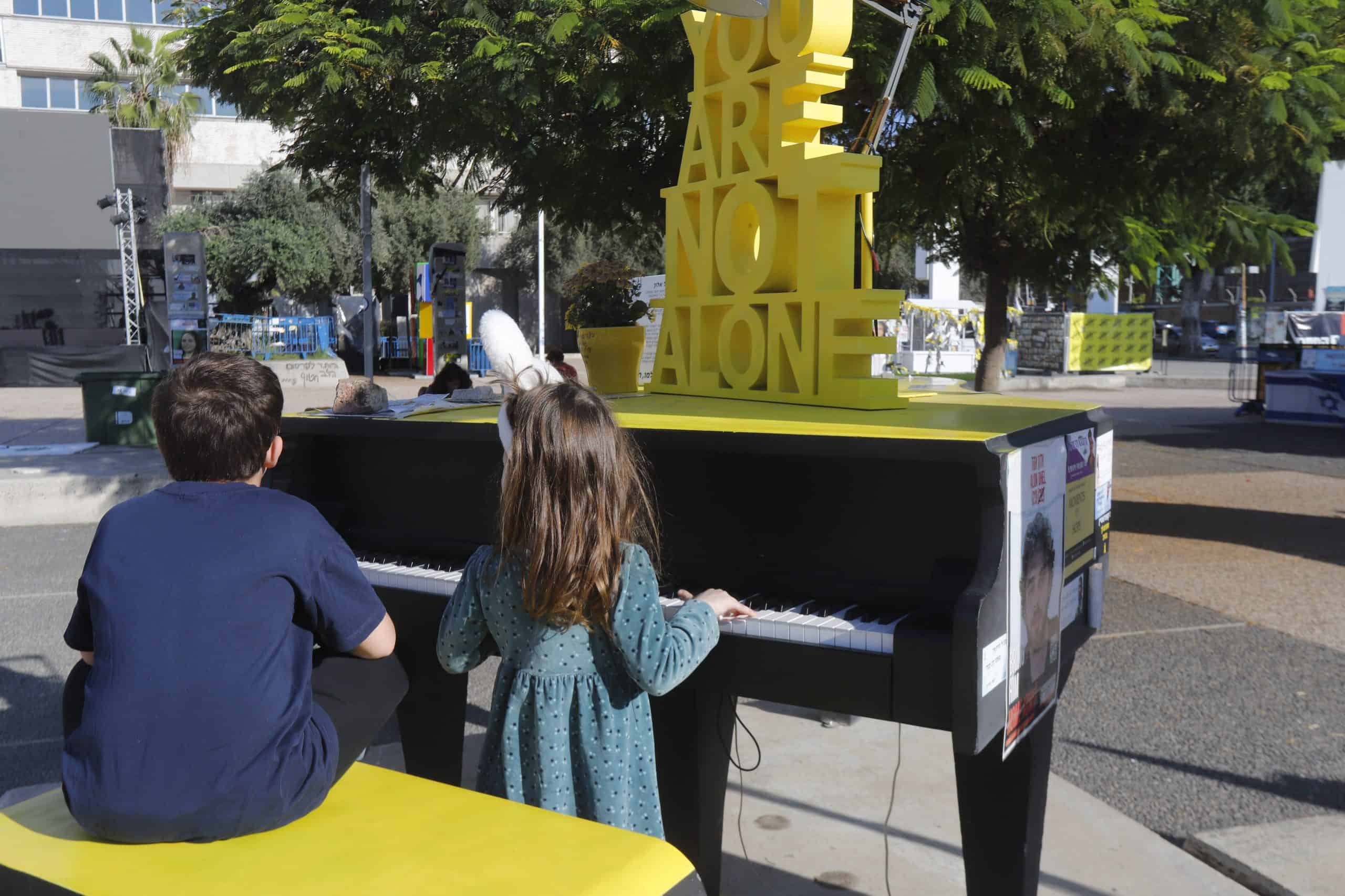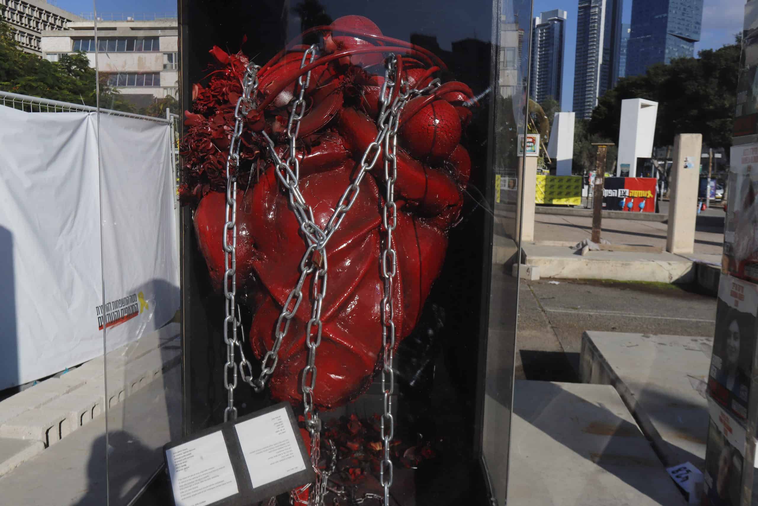 "הכל התחיל עם אביחי ברודץ מכפר עזה," מספרת בוני לברון, מתנדבת בכיכר. "הוא ישב ברחוב קפלן עם השלט 'הלב שלי בעזה'. רחוב קפלן מזוהה פוליטית, אז אמרו לו לבוא לכיכר, מקום מרכזי שבו נמצאים גם בתי המשפט, המוזיאון והקרייה."