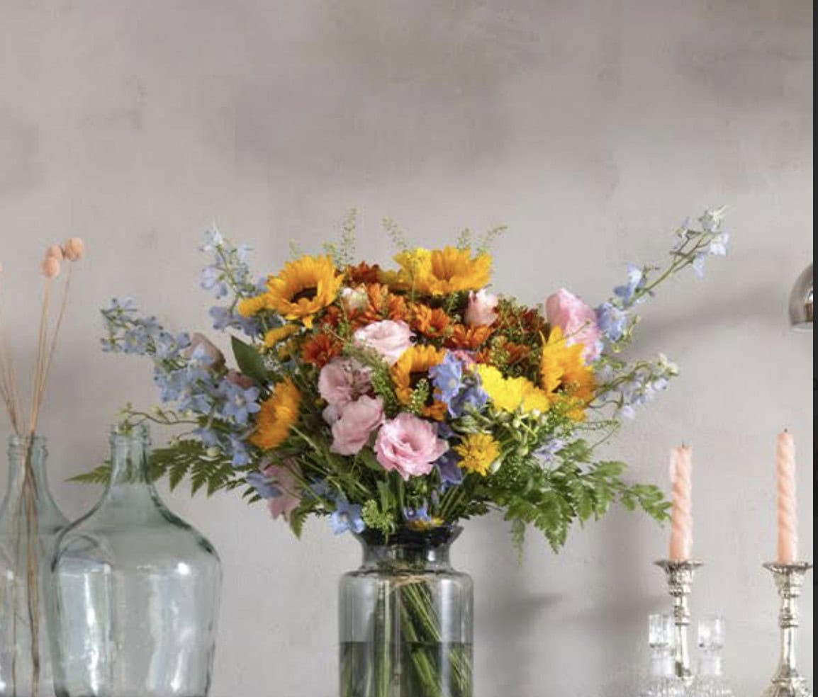 הזר של ליהי טולדנו זר ססגוני שופע, מלא חיות ונוכחות, בעיצוב בפראי שמשלב צבעים עזים והרמוניים 189 ₪