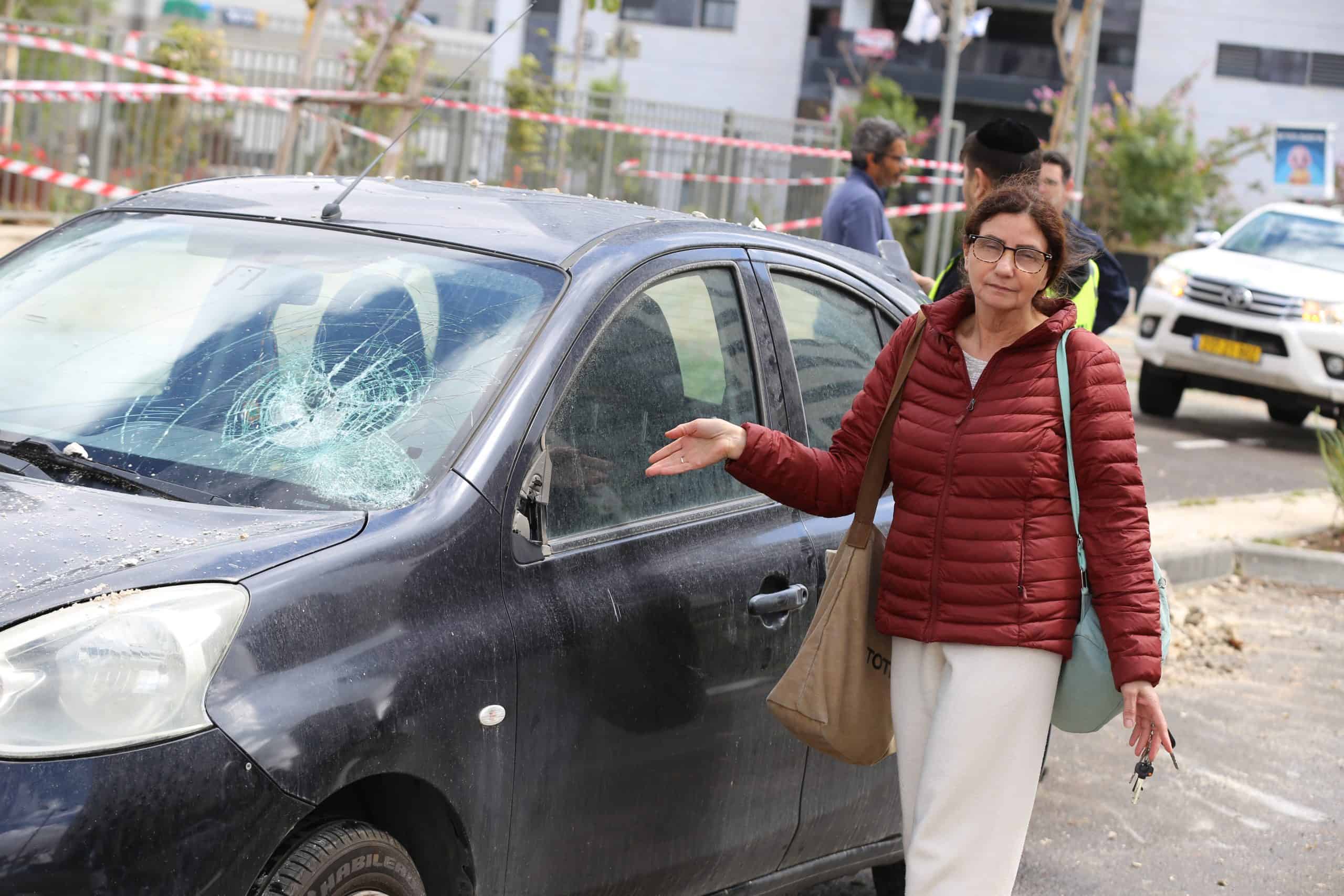 "יצאתי מהעבודה, אני עובדת פה," היא סיפרה לי בקול רועד, כשהיא עדיין מתנשפת. "התחילה אזעקה ומיד נכנסתי לממ"ד. הייתי אמורה ממש להיכנס לאוטו. כשירדתי, זה מה שראיתי – את האוטו הרוס. שמעתי את האזעקה, נכנסתי לממ"ד, והייתי אמורה להיות באוטו ממש בזמן הזה. פשוט עמדתי לצאת לעבודה הבאה, אני עובדת בבתים, ומזל שהכול בסדר."