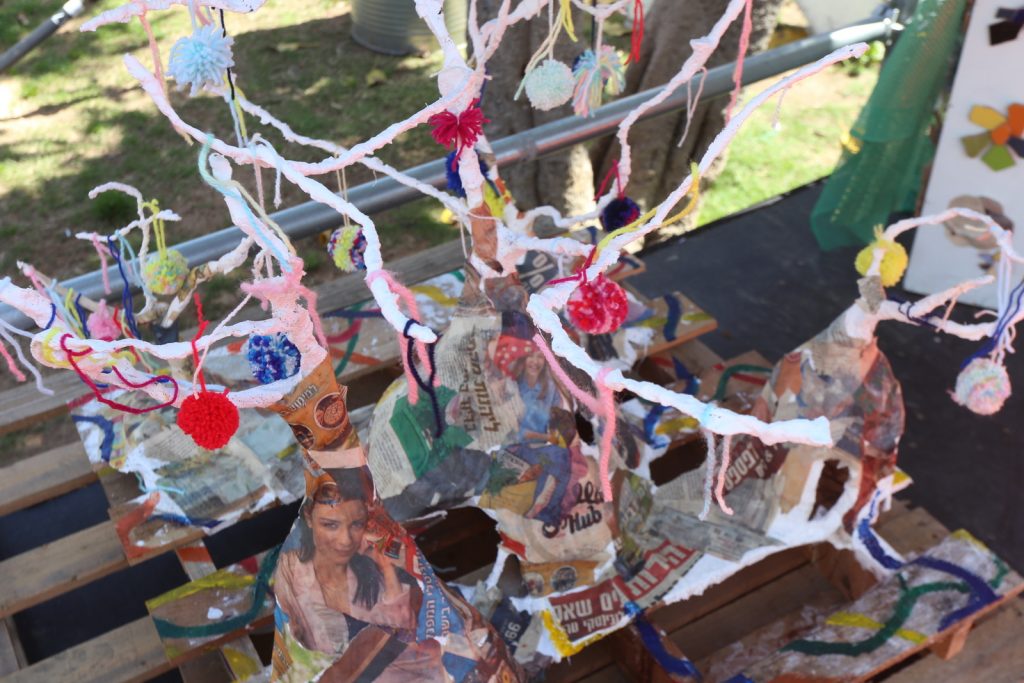 תלמידי עירוני ד' יצרו את המציג 'תודה שבאתם' אלו יצרו מיצג שעשוי ממסכות פנים גדולות משלל תרבויות היסטוריות