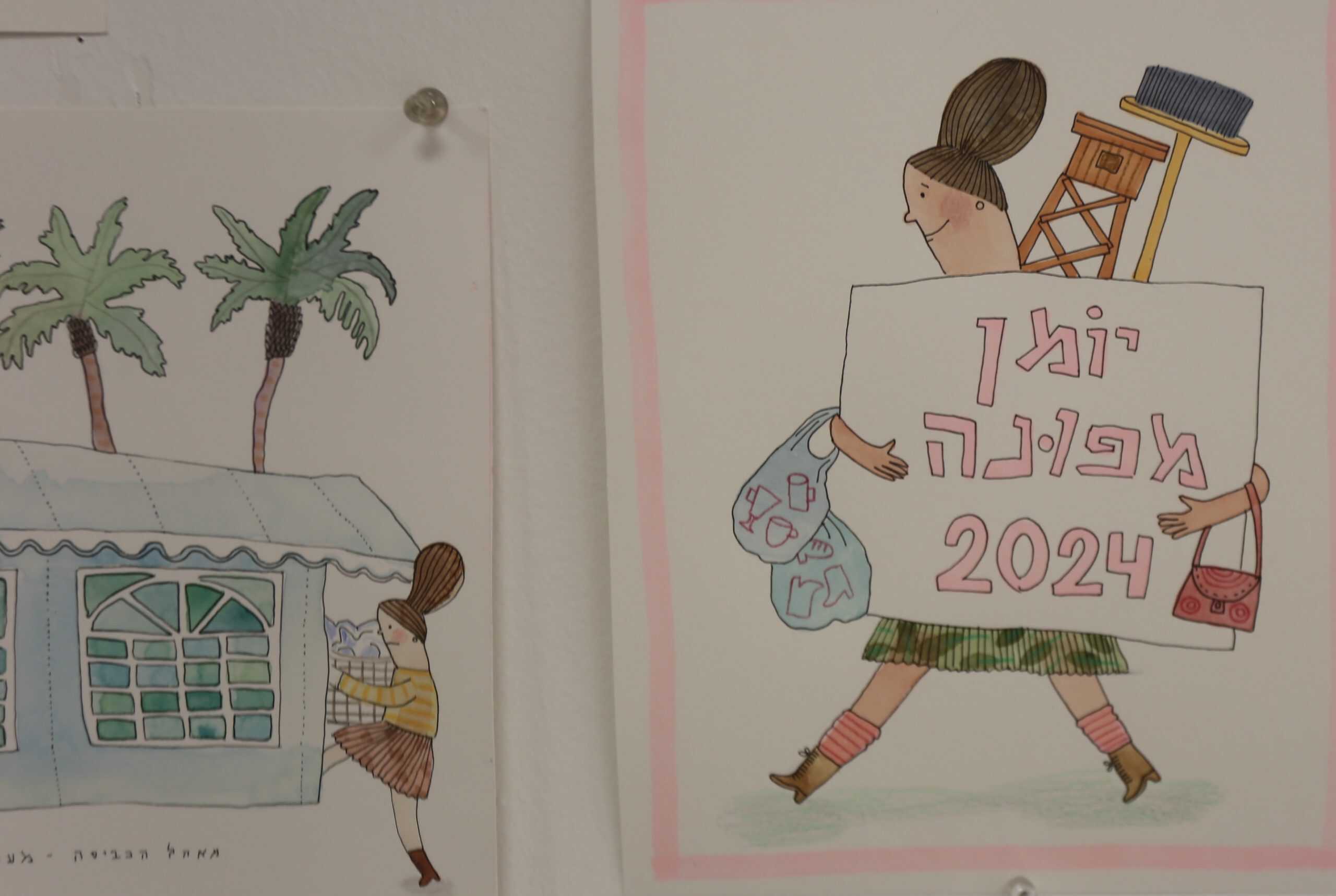 המאיירת המוכשרת מיכל דיבואה בת קיבוץ חניתה מציגה בתערוכה שהובאה ממוזיאון 'חומה ומגדל' איורים מנגזרות נייר ועיתונים בשילוב של איורים עם קריצה את סיפורה של מפונה במין יומן תמונות של אותם אלו שפונו לאחר אסון שבעה באוקטובר, היומן מפנה זרקור למפונים המתמודדים, ומסתגלים מי יותר מי פחות לחיים הרחק מהבית. איוריה העכשוויים של מיכל דיבואה מתארים את המציאות היום יומית בחייה של "מפונה", בת דמותה, על רקע אירועי השעה, ומלווים בדמע, בצחוק ובאבסורד. לצד זאת ובאופן שקושר את גורלם של מפוני 48' למפוני 23' – מוצגת בתערוכה איורים של מיכל לספר ילדים 'סבא מספר בלי להגזים' שכתבו אורנה לנדאו ונורית כהן.