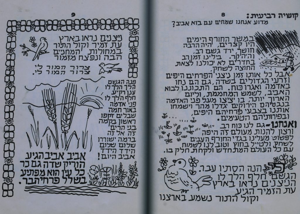 כפר סאלד 1971 להגדה הקיבוצית הוכנסו אלמנטים מעבודת האדמה ועונות השנה כיאה לעם שחזר מהגלות