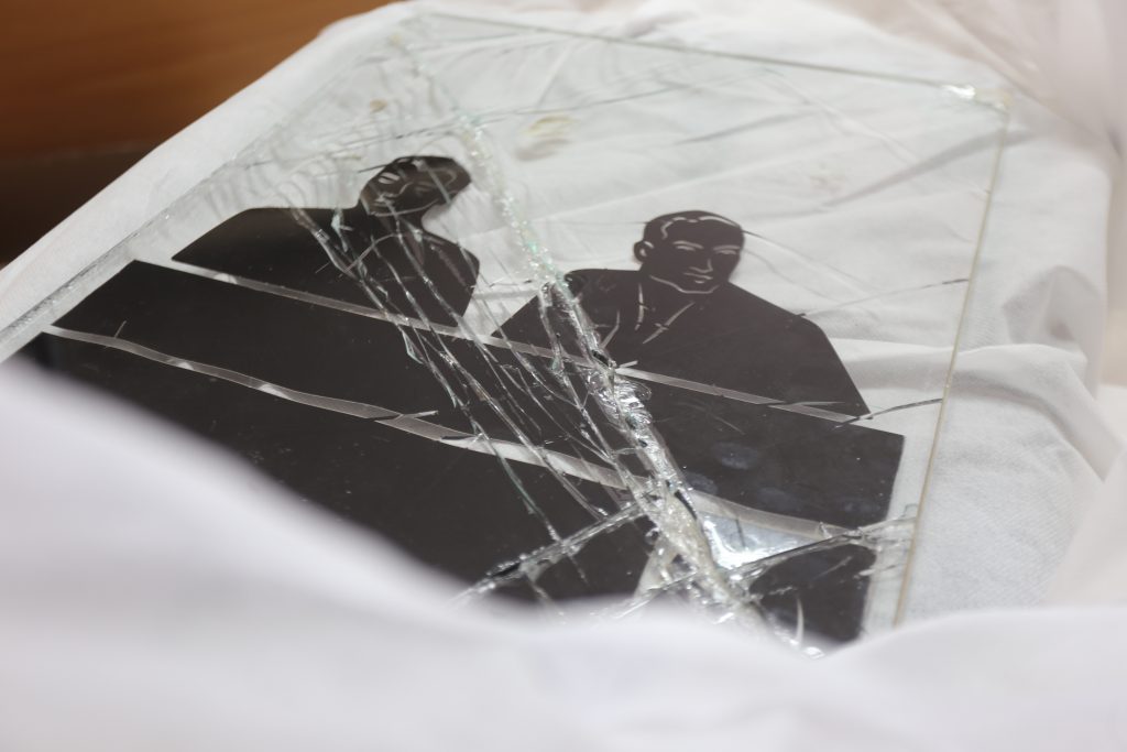 החלון מהתצוגה של בית שביתת הנשק בו פגעו הקליעים בשבעה לאוקטובר