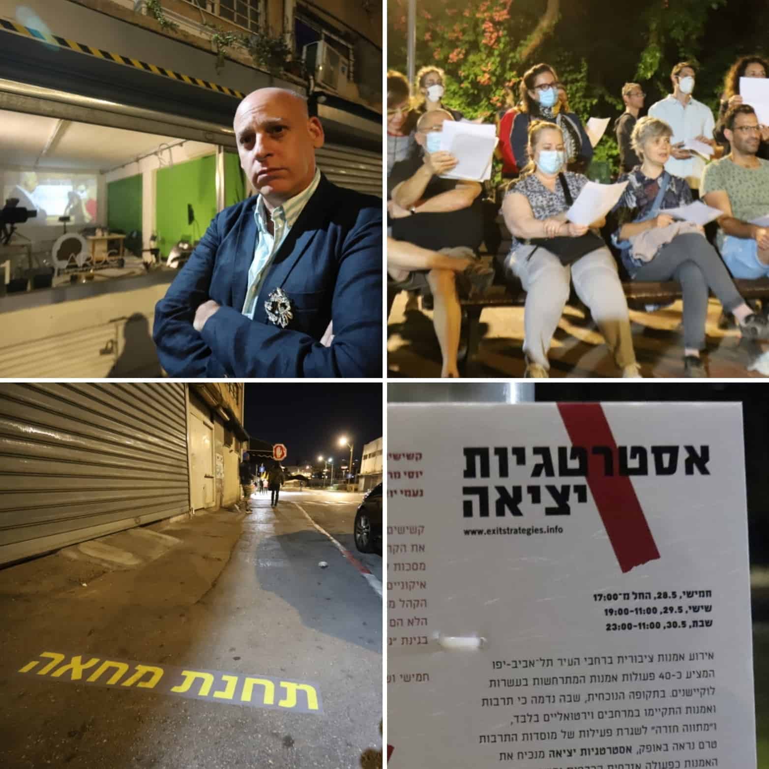 בתל אביב נערכו במהלך חג השבועות 40 פעולות אמנותיות במרחב הציבורי בהקשר של משבר הקורונה : איש התקשורת עומר קריגר הקים ערוץ טלויזיה לאומנות, האמן טל ארז יציר את 'תחנת מחאה' ל 49 איש בנווה שאנן, וד"ר נעמי יואלי יחד עם חבורת 'קשישים עם מחלות רקע' קיימו טקס גירוש קורונה שכלל לחשים, שירים ופארודיה על מתכון הביסקוויטים של שרה נתניהו