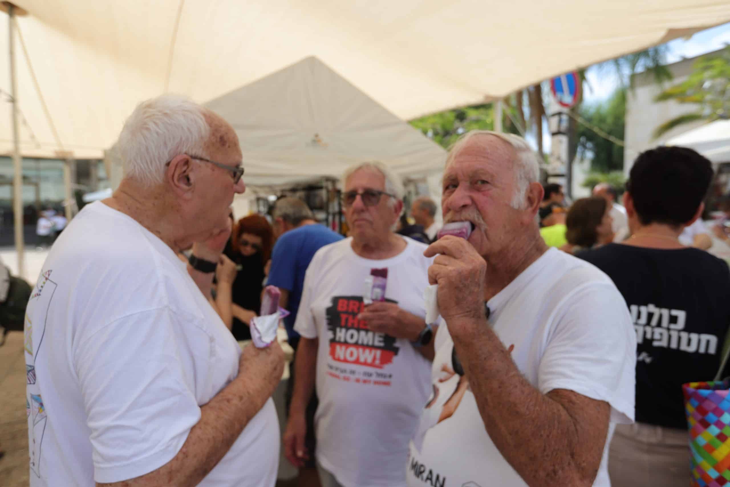למול הטרגדיה הנוראה, נוצרת כאן בועה קסומה של אותה 'ארץ ישראל היפה'. לשעה קלה, יש אווירת קיבוץ אמיתית. כולם שואלים על כולם, מתעניינים, מחבקים. סביב שולחנות עמוסים כל טוב, הסולידריות והערבות ההדדית מורגשות באוויר. כל שבוע קיבוץ אחר בתורו מביא כיבוד. אישה משום מקום מגיעה עם קרטיבים, מישהו שאפתה עוגה מניחה אותה על השולחן, עטופה בסמל החטופים. הרבה מבוגרים מתרגשים לפתע, מרגישים שחזרו אחורה בזמן, לתקופה אחרת.