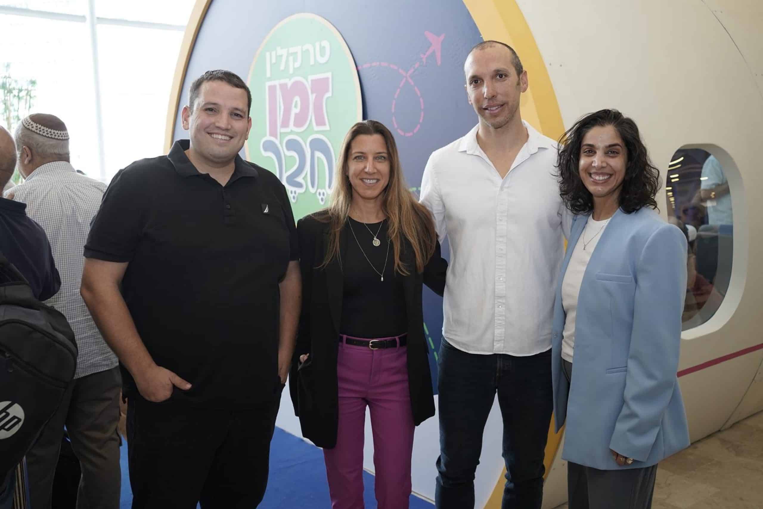 יריד "זמן חבר" של מועדון "חבר" נפתח זו השנה השלישית ברציפות בתשעה מקניוני עזריאלי בפריסה ארצית. היריד מציע לעמיתי המועדון חוויית קניות ופנאי ייחודית, הכוללת חלוקת שי, קופונים בלעדיים ופעילויות חדשניות: עמדות VR של סיורים ברחבי העולם וצילומי AI ביעד שבו "ביקרו", מודפסים על בלוק עץ במתנה.בצילום מימין: עינת מצליח, מנהלת אגף שיווק קניונים בקבוצת עזריאלי, אלון חנוכי, סמנכל סחר ושיווק קבוצת דיפלומט, אושרת פרידריך, סמנכ"לית שיווק מועדון "חבר" וחן ישראל, משנה למנכ״לית חבר.