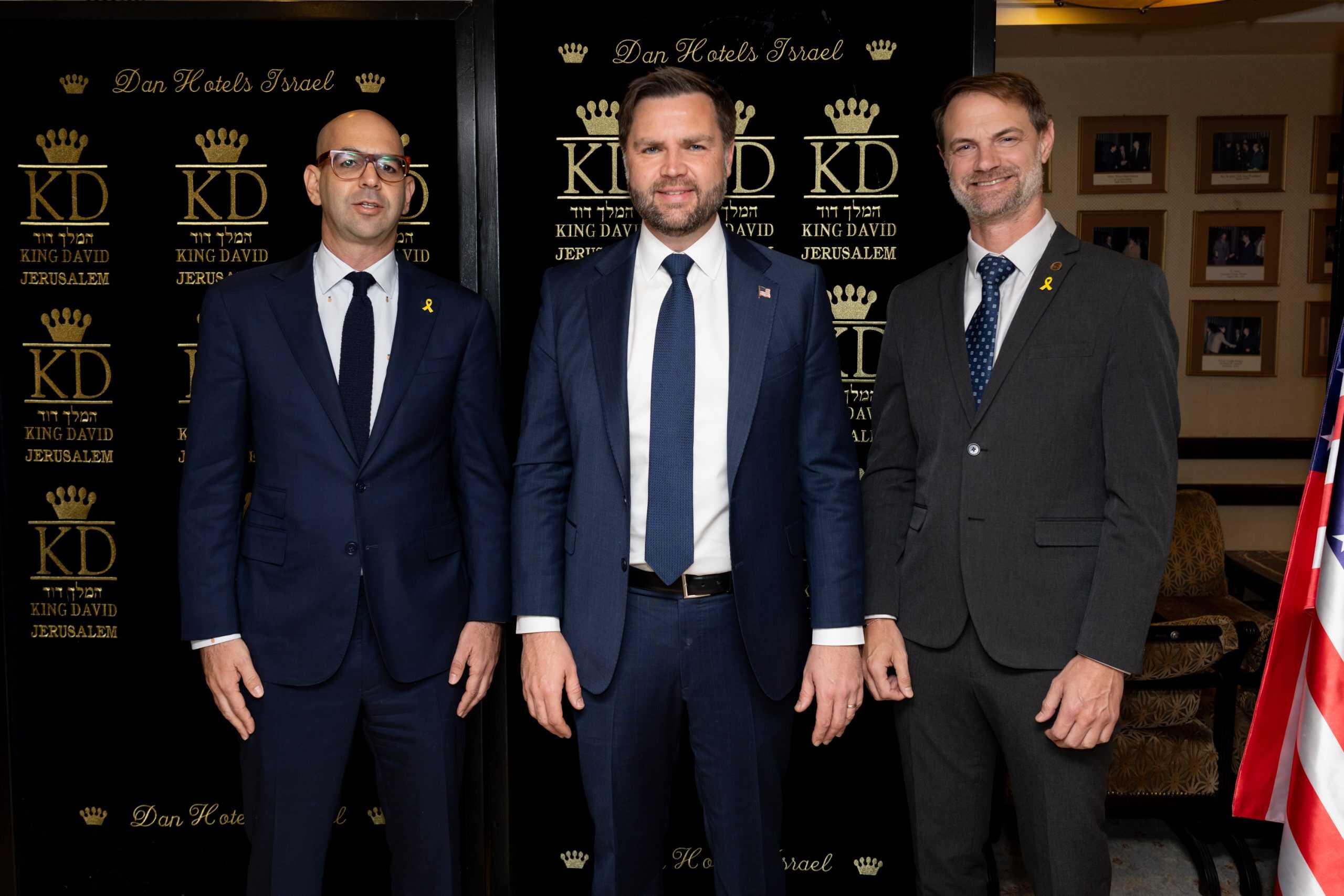 מלון "המלך דוד" ירושלים אירח את סגן נשיא ארצות הברית מר ג'יי די ואנס (J.D. Vance) במשך 3 ימים במהלך ביקורו האחרון בישראל. גידי פדרמן, יו"ר חברת מלונות דן ומתן לרנר, מנכ"ל מלון "המלך דוד" ירושלים קיבלו את פניו של סגן נשיא ארצות הברית והצטלמו יחדיו.