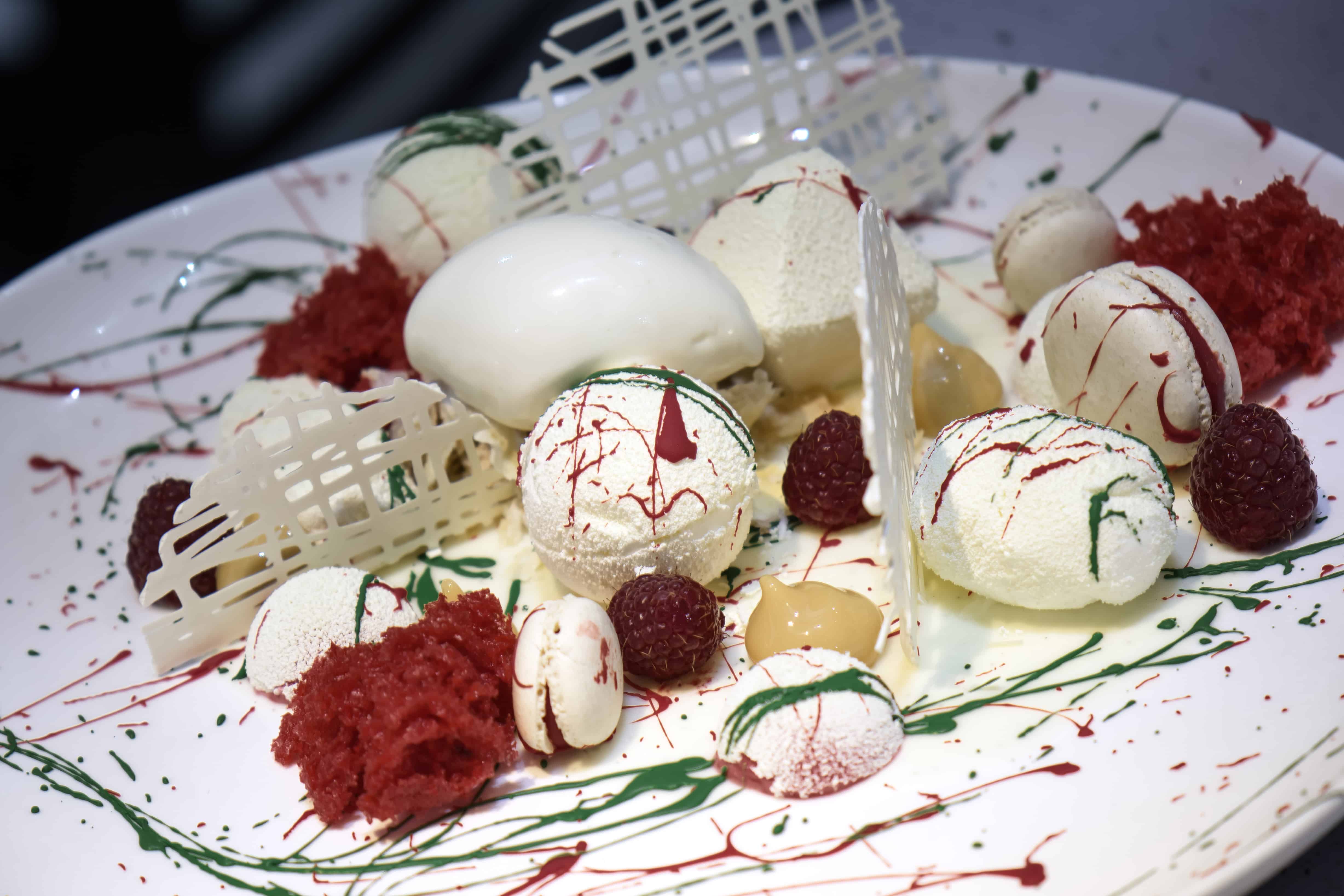 מנה מומלצת : פבלובה תותים בקרם מסקרפונה מוגשת במרק פסיפלורה עם הפתעה של כדור פיננסייר וקרמל קראנץ'